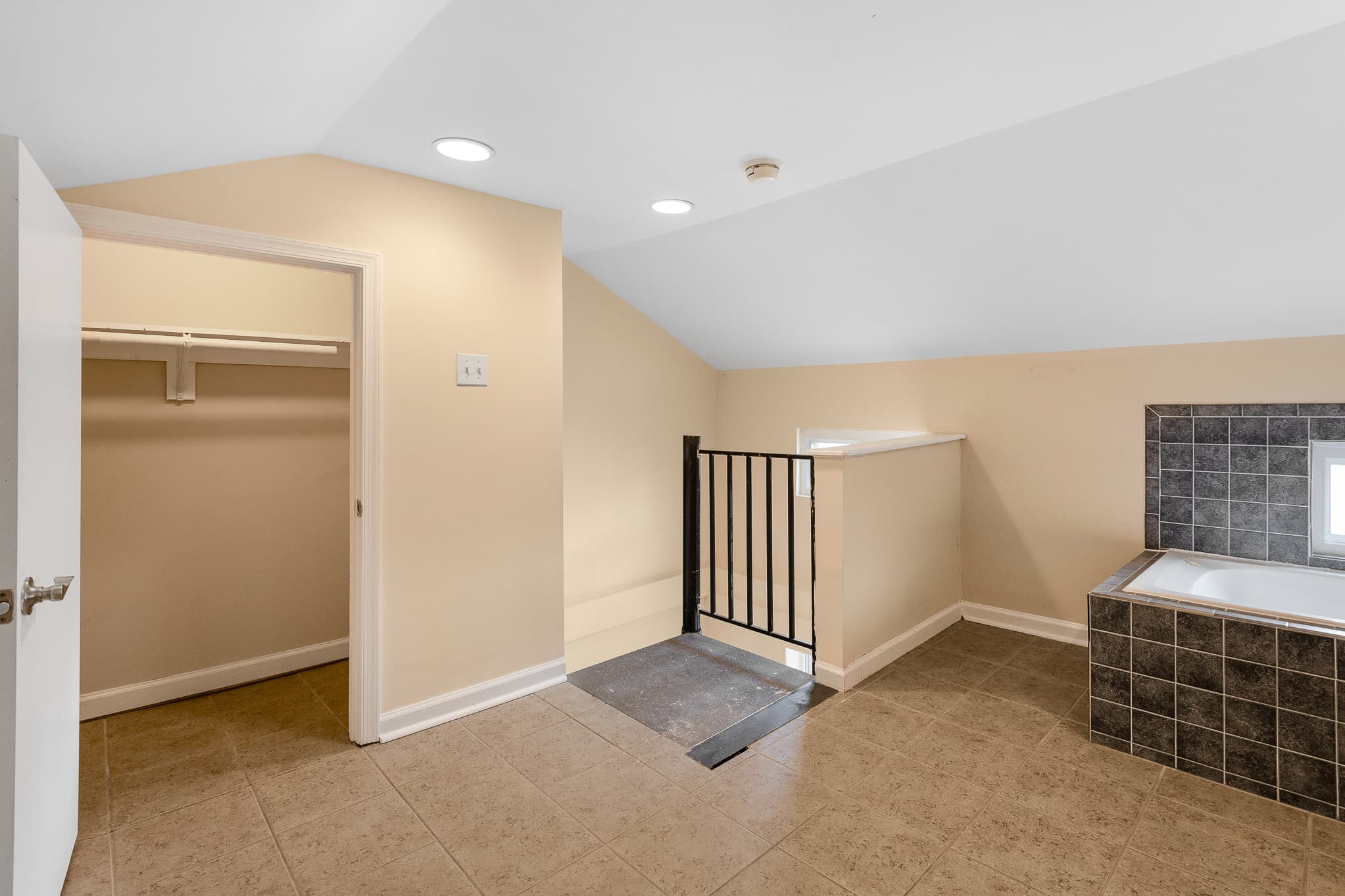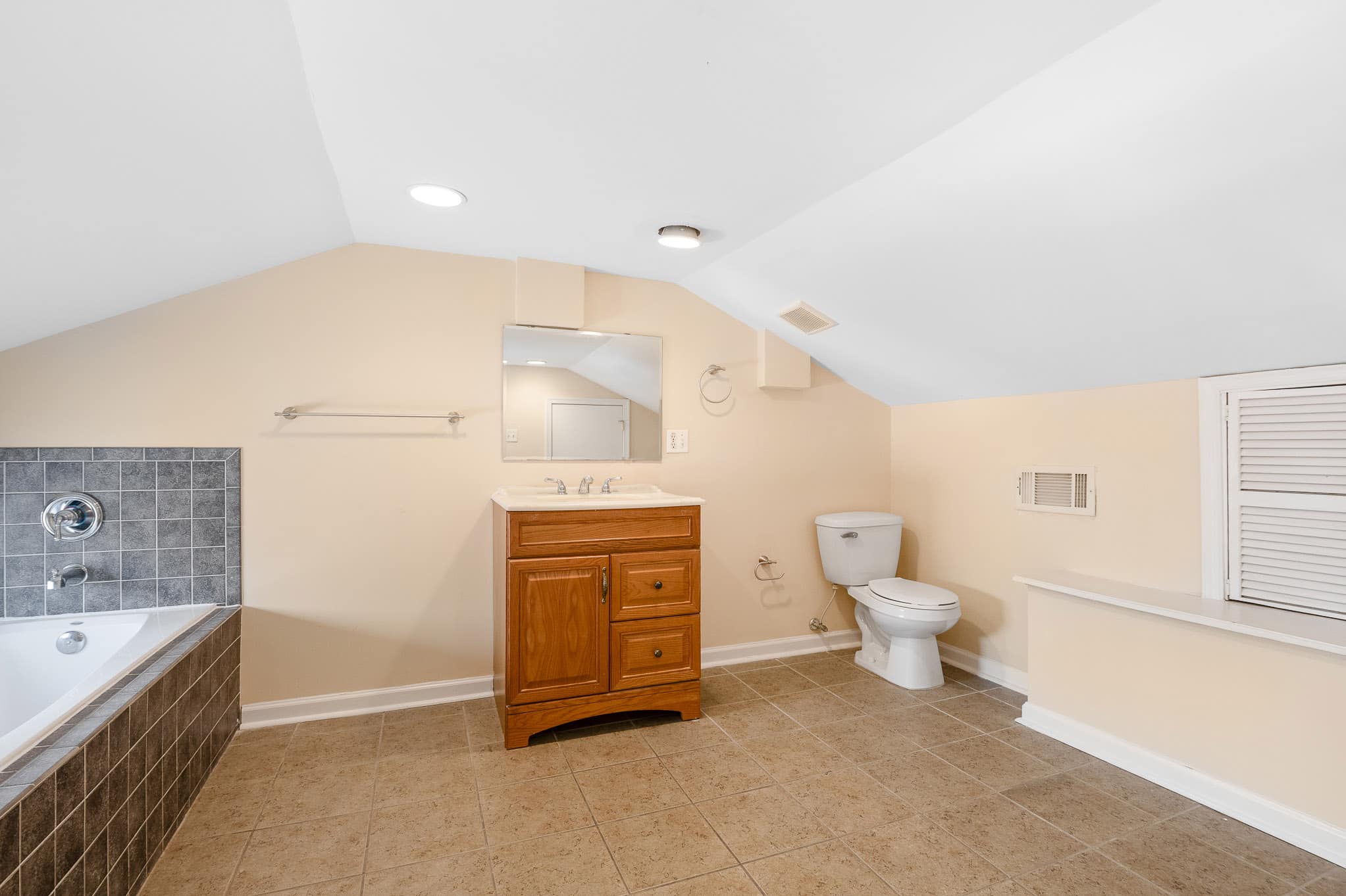 Bedroom – carpeting with large en-suite full bathroom on half story