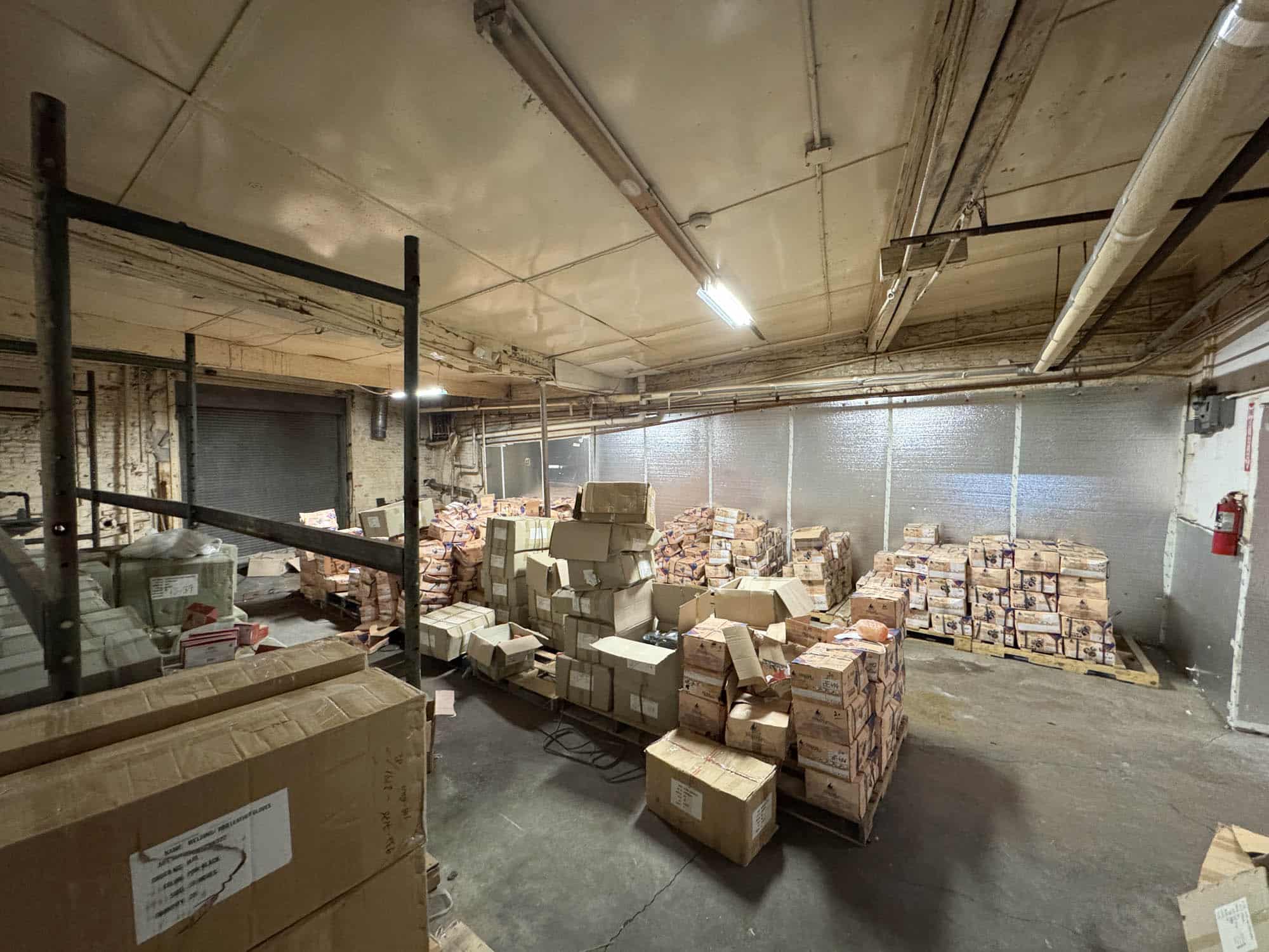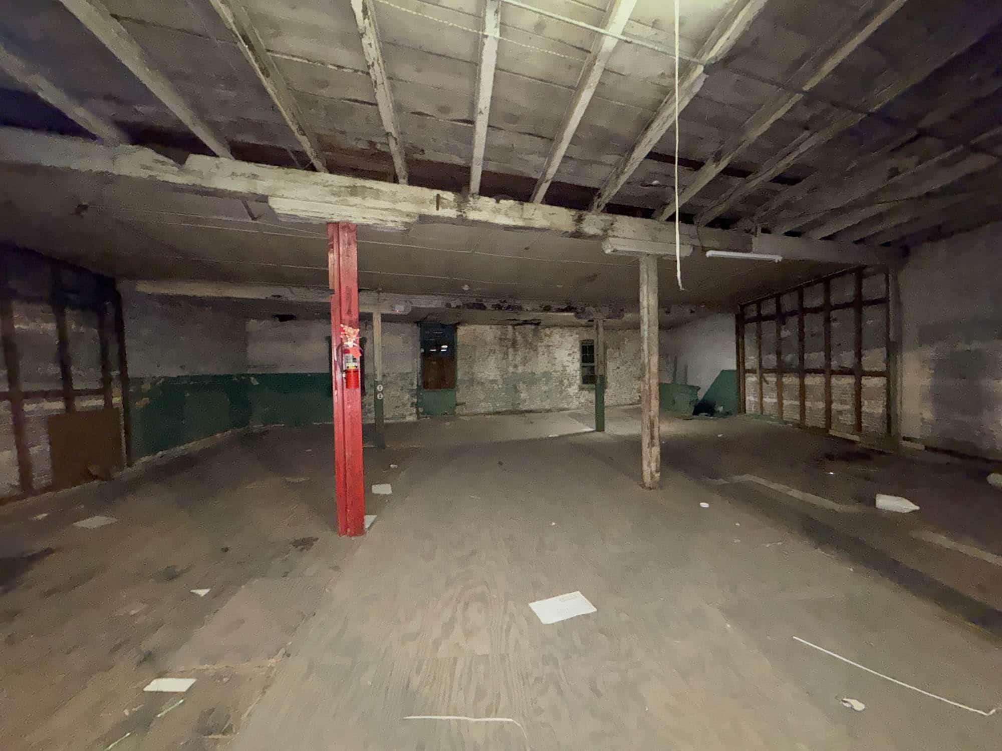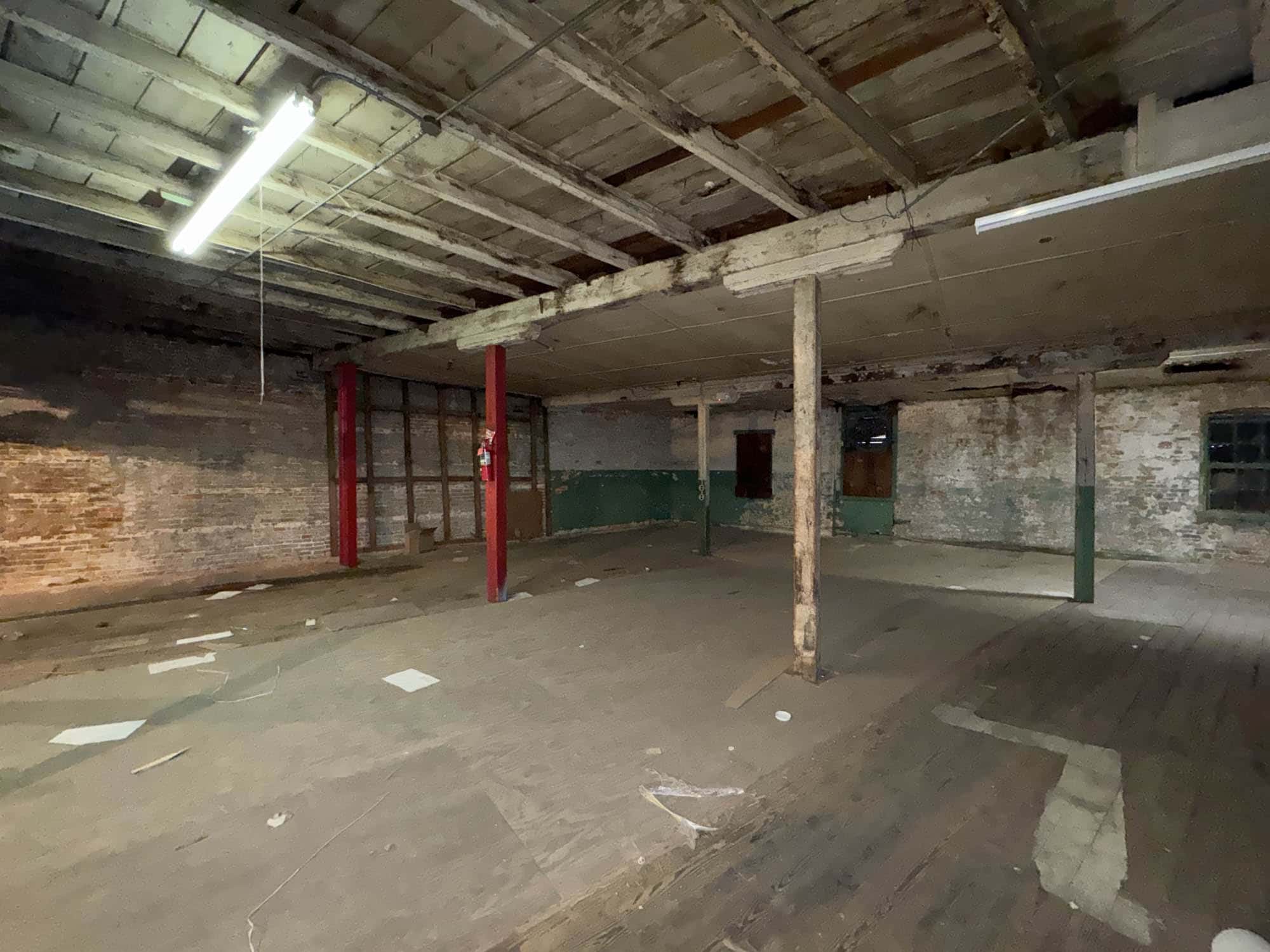 Masonry warehouse buildings – constructed in 1920, containing 16,305 square feet of gross building area, according to public tax records. 10,301 square feet of estimated ground floor space. A steel roof was installed in 2006 covering all four warehouse buildings.