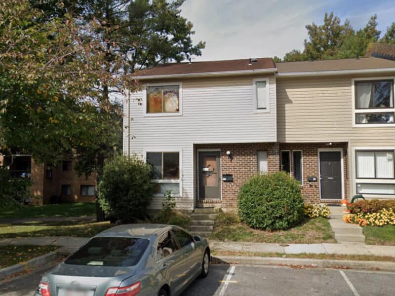 According to public tax records, the home is believed to comprise a two story brick and vinyl siding townhome, built in 1977, containing 1,518 square feet of living area and 748 square feet of basement space. The house is believed to contain a living room, dining room, kitchen, 3 bedrooms, 2.5 baths, electric heat pump and central air conditioning, fireplace and deck. Monthly homeowners association (HOA) fee is believed to be $184.