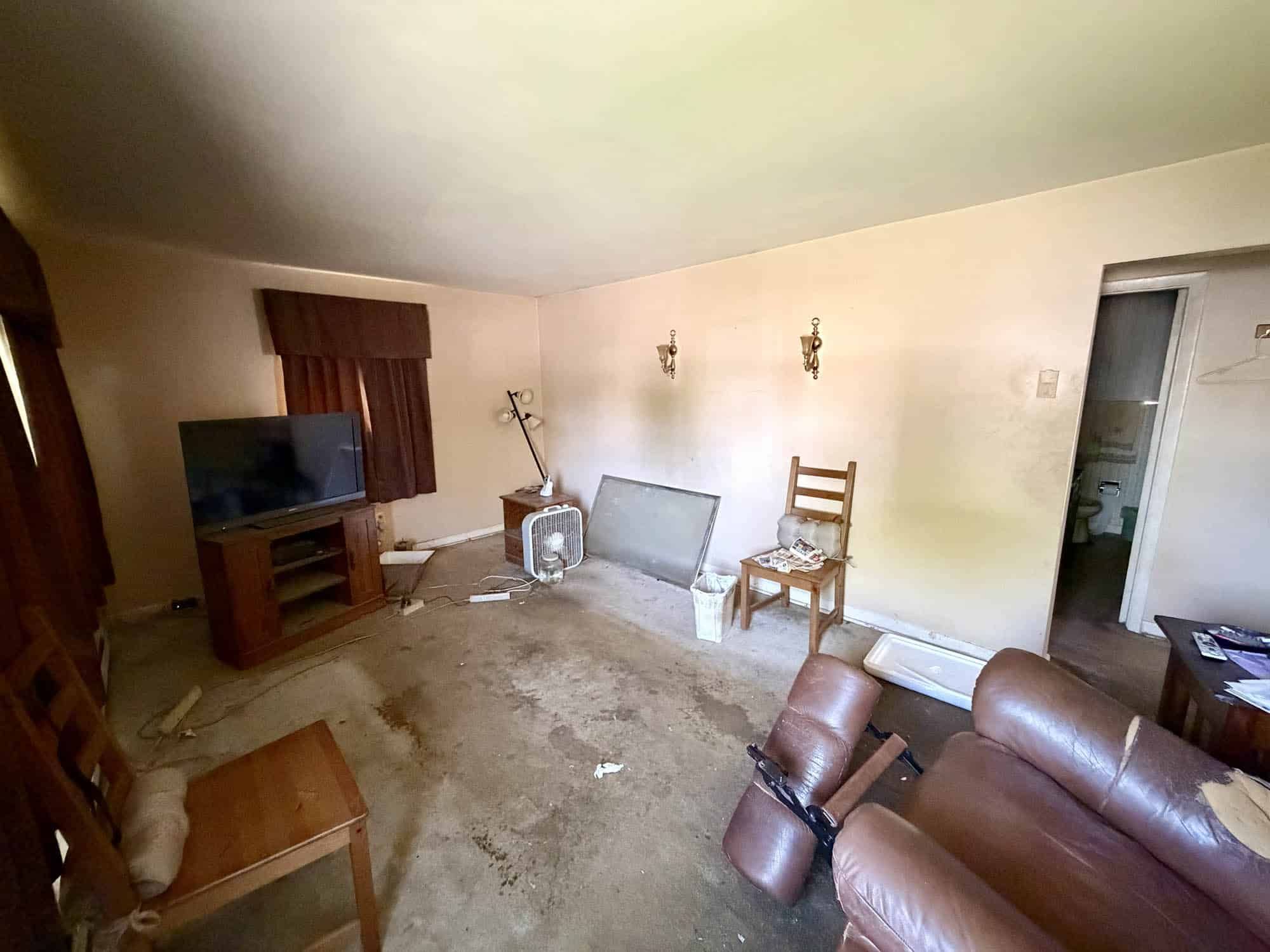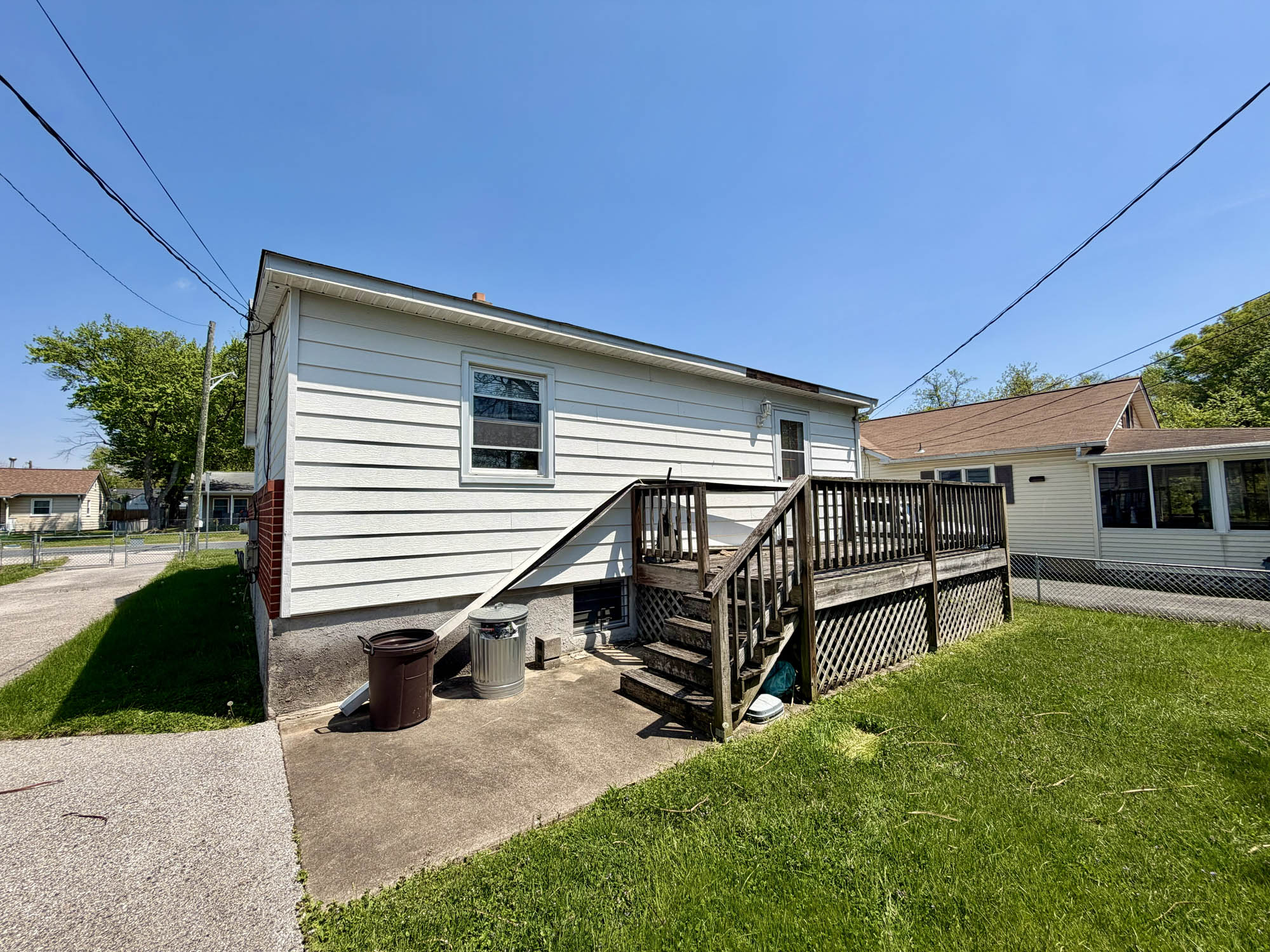 Detached single-story home, constructed in 1942, containing 1,044 square feet of living area above grade and 1,044 square feet of basement space, according to public tax records. Exterior features include concrete block foundation, asphalt shingle roof, brick and vinyl siding, vinyl clad replacement windows, and a rear wooden deck. Full renovation is required. The home is arranged as follows: