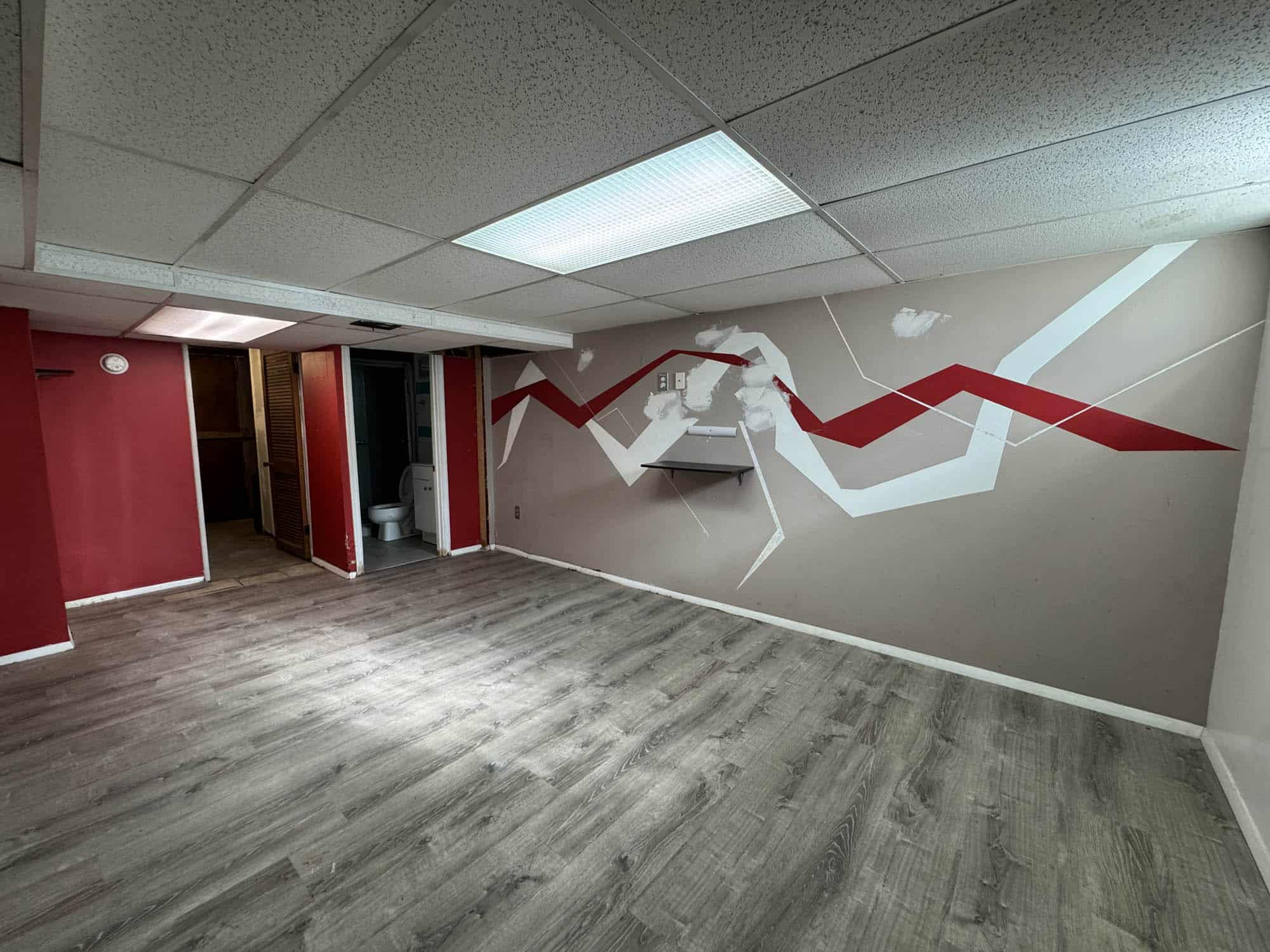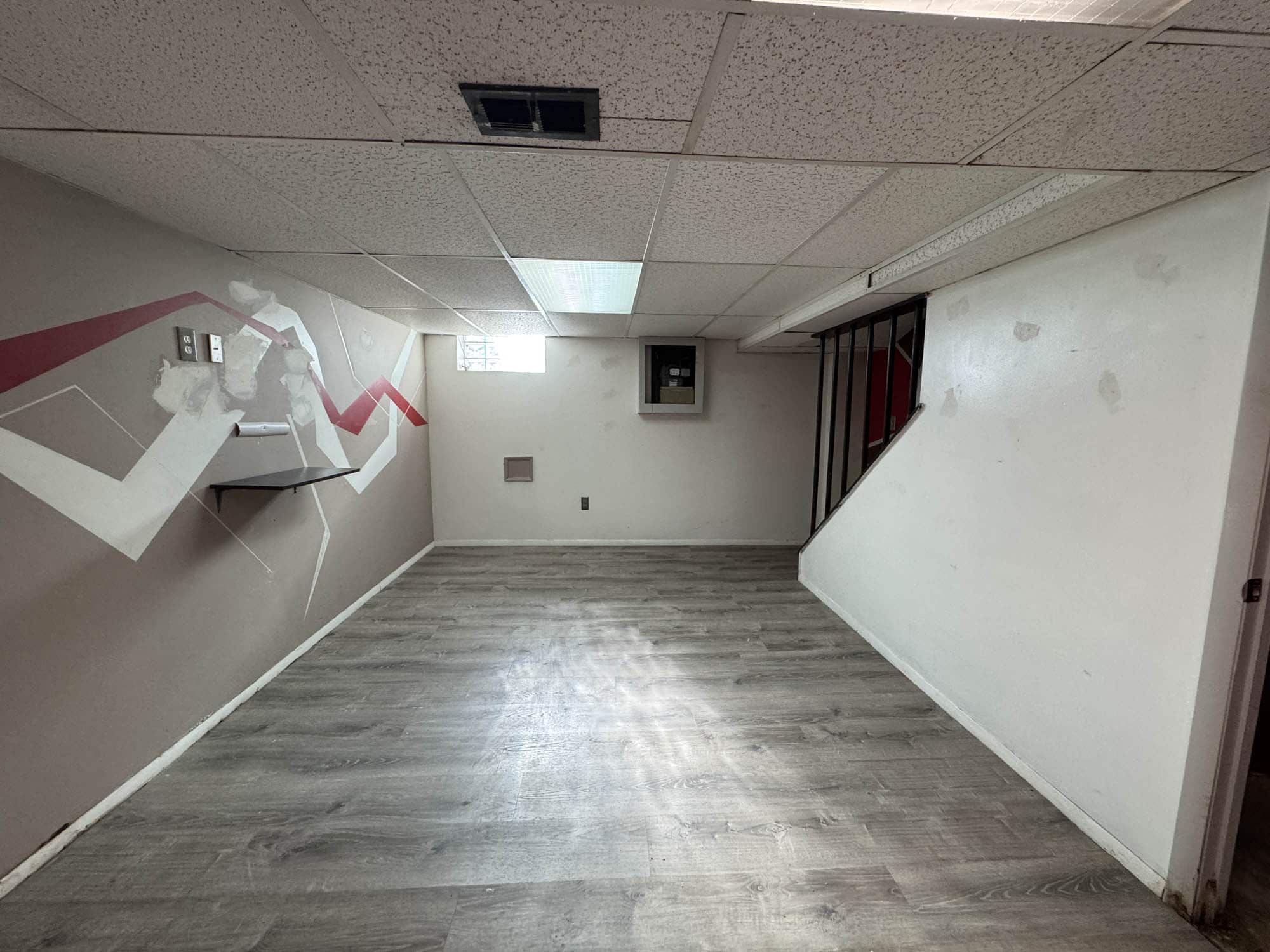 Finished basement with vinyl flooring