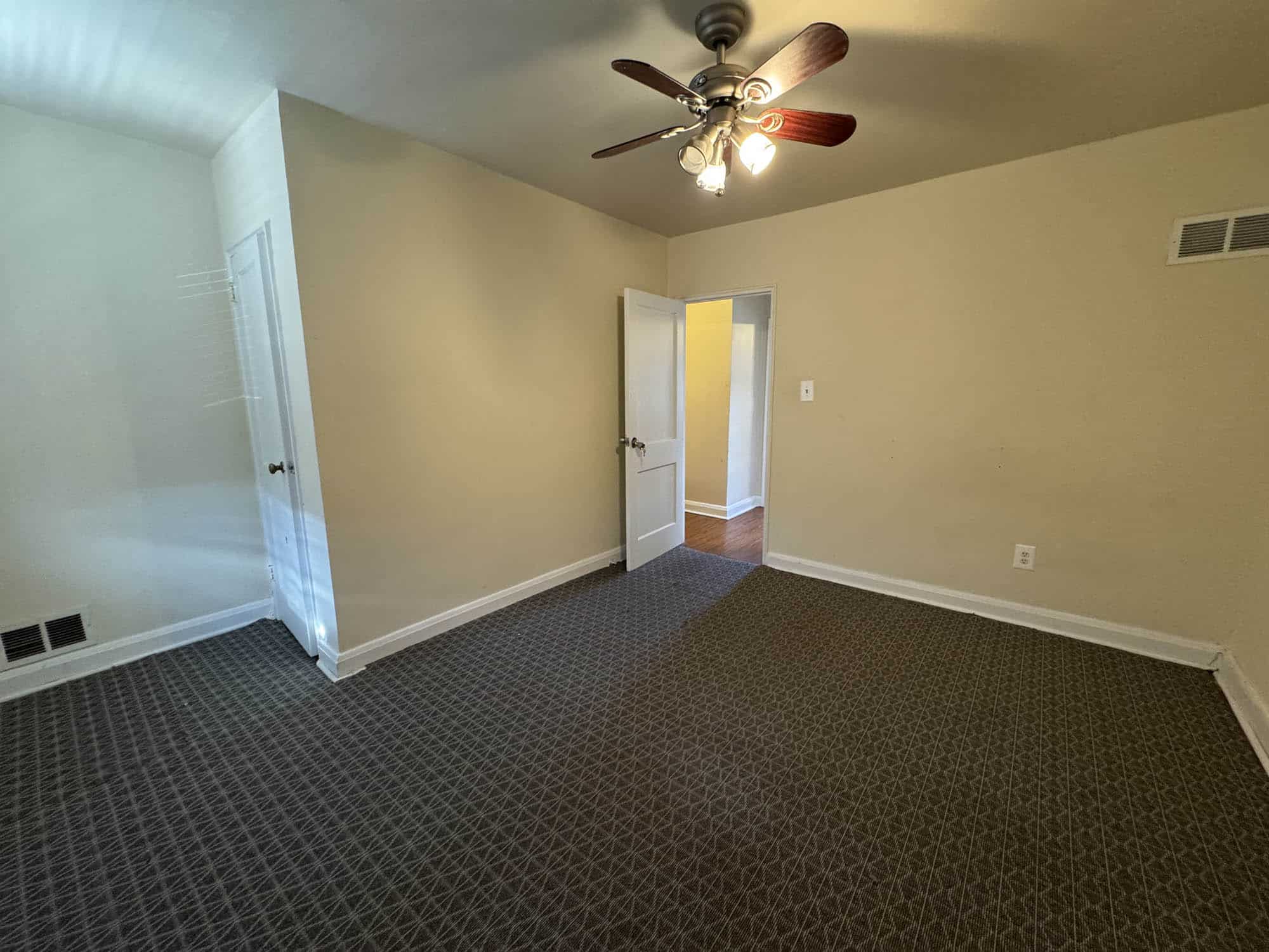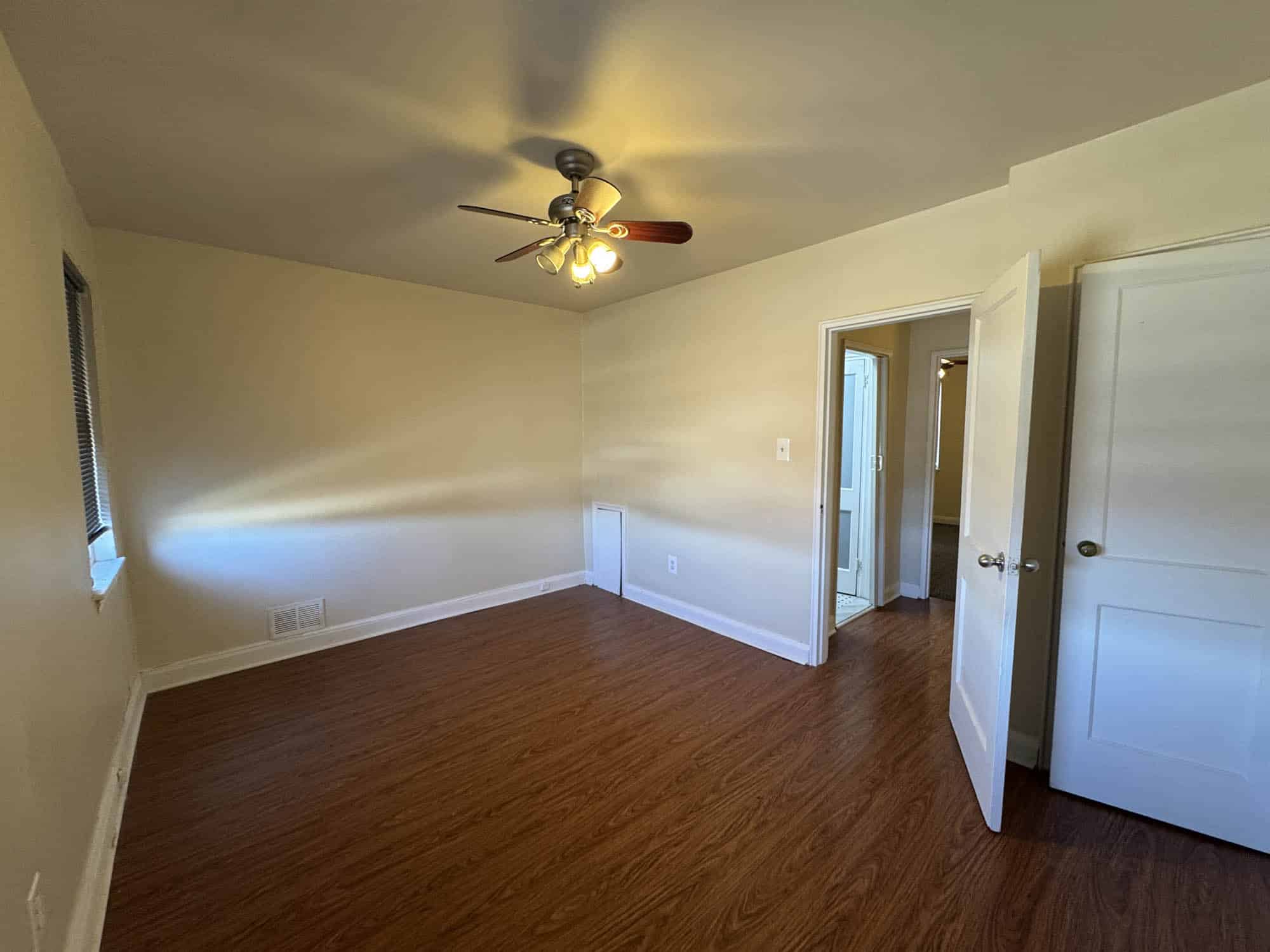 Bedroom – vinyl flooring with ceiling fan