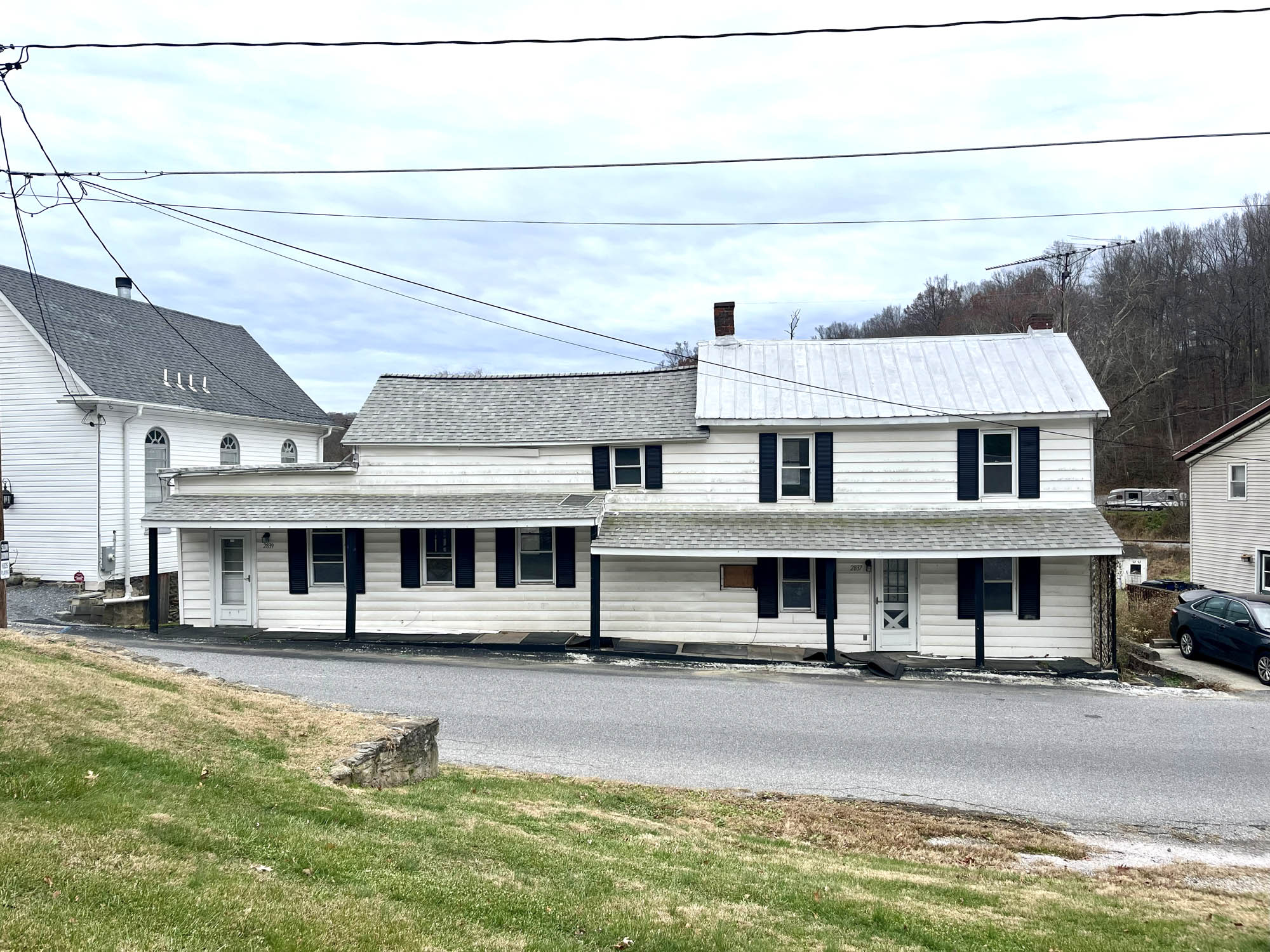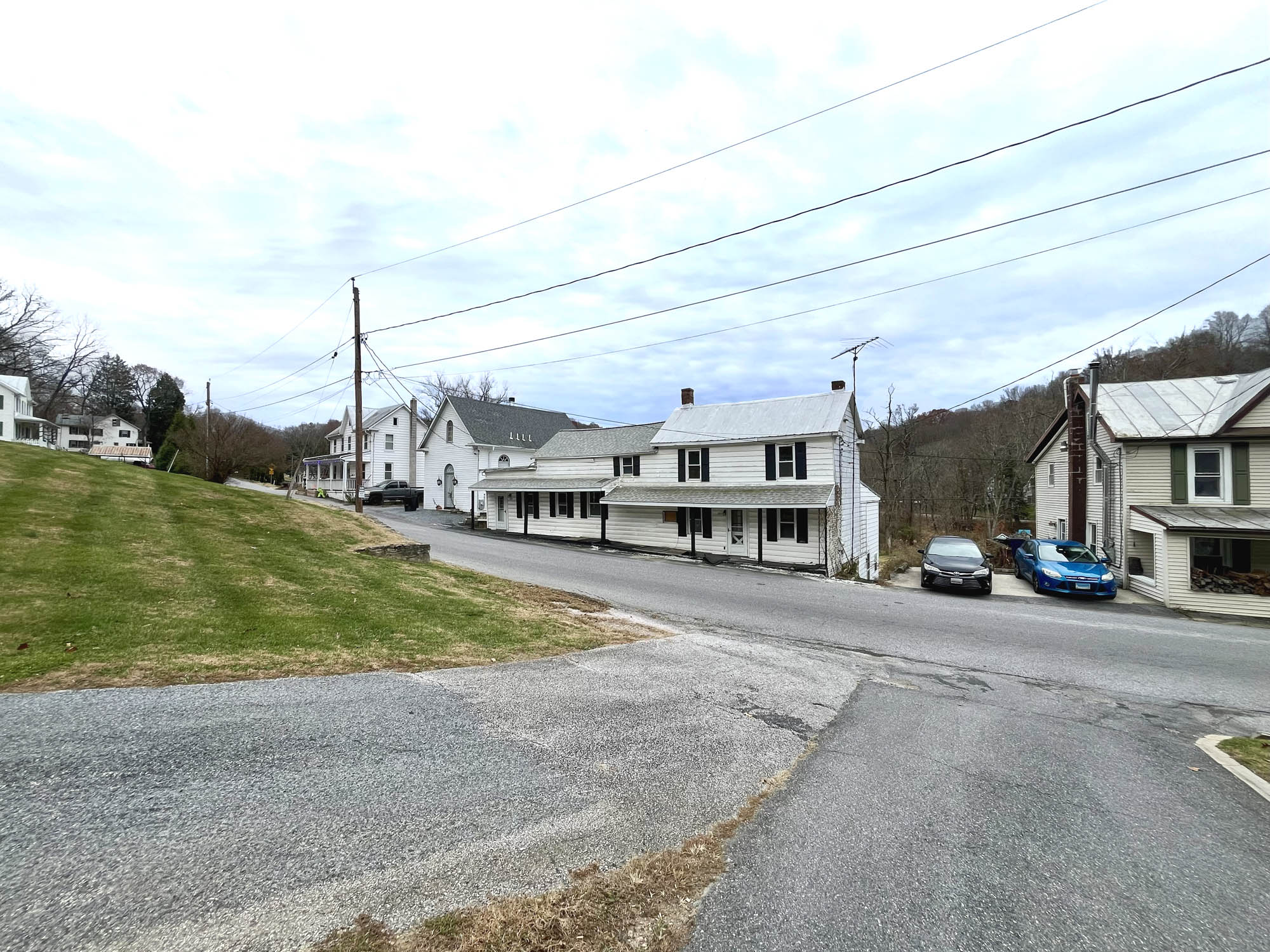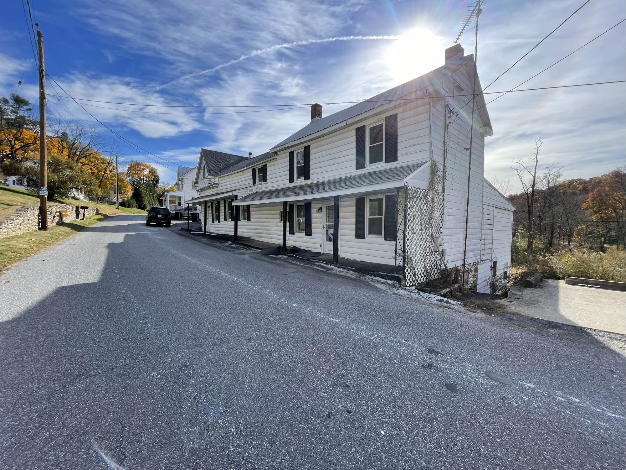 2841 Patapsco Road is located within the Finksburg zip code of Carroll County, and is situated north of Finksburg, east of Westminster and south of Hampstead. The surrounding community is comprised of approximately 50 properties positioned along the North Branch of the Patapsco River, referenced as a “whistle stop” town on one of the nearby buildings. Area buildings, including homes, churches and storefronts, are of mixed ages and styles, with some dating back to the mid 1800s and early 1900s. The larger surrounding area is comprised of farms, farmettes, hillside homesteads and small subdivisions.