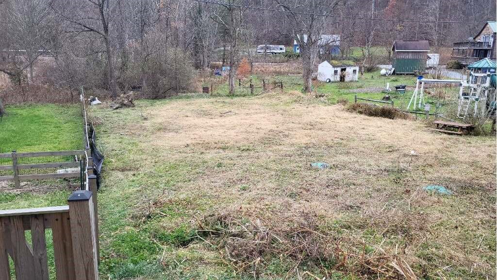 Roadside lot fronting approximately 61′ along Patapsco Road, with depths of 126′ and 145′. Partially fenced rear yard.