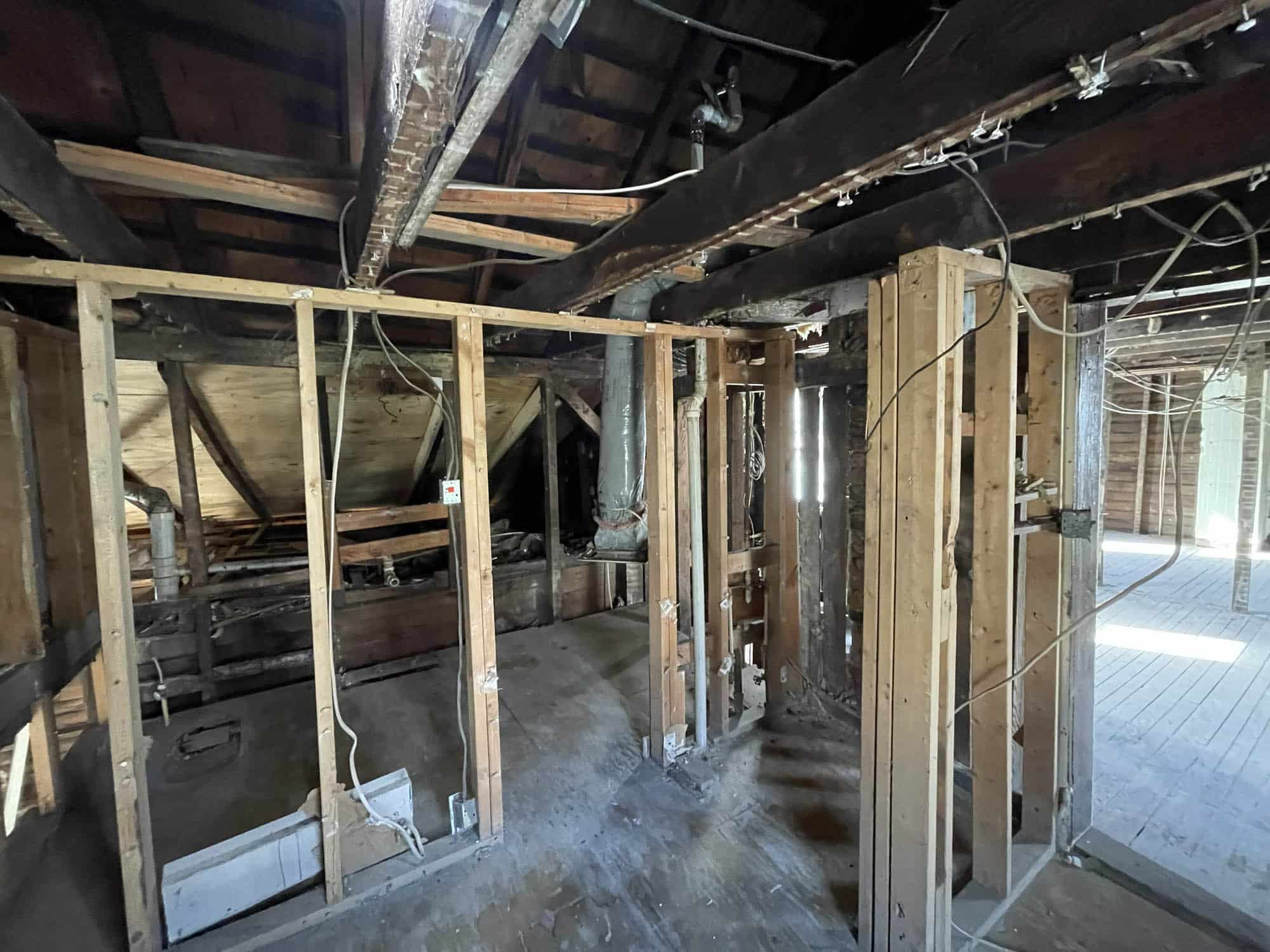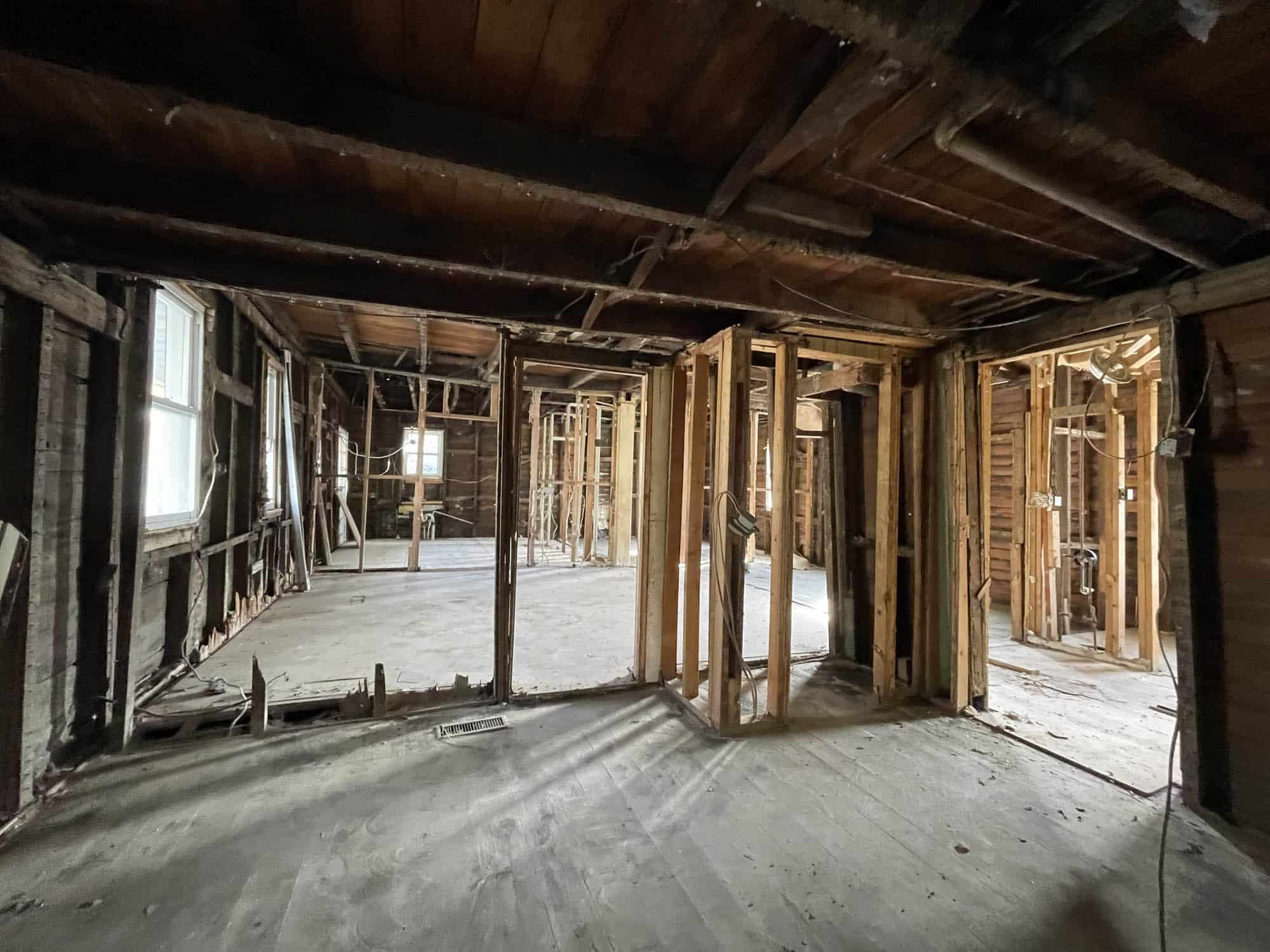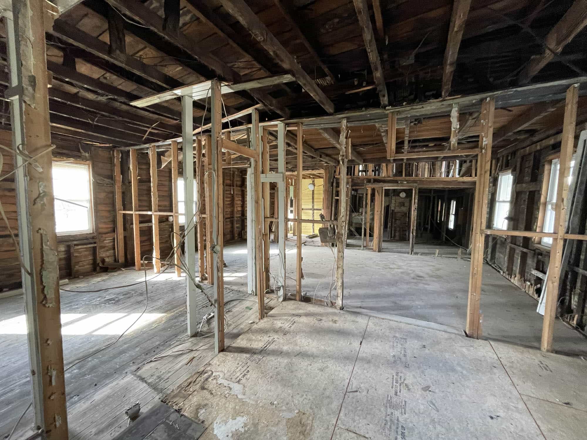 Two story frame building with at grade basement level – constructed in 1900 and containing 3,530 square feet of gross building area. The home was originally arranged as two semi-detached units, since gutted with some original and some new framing with an intention for single family use. Needs full build-out.