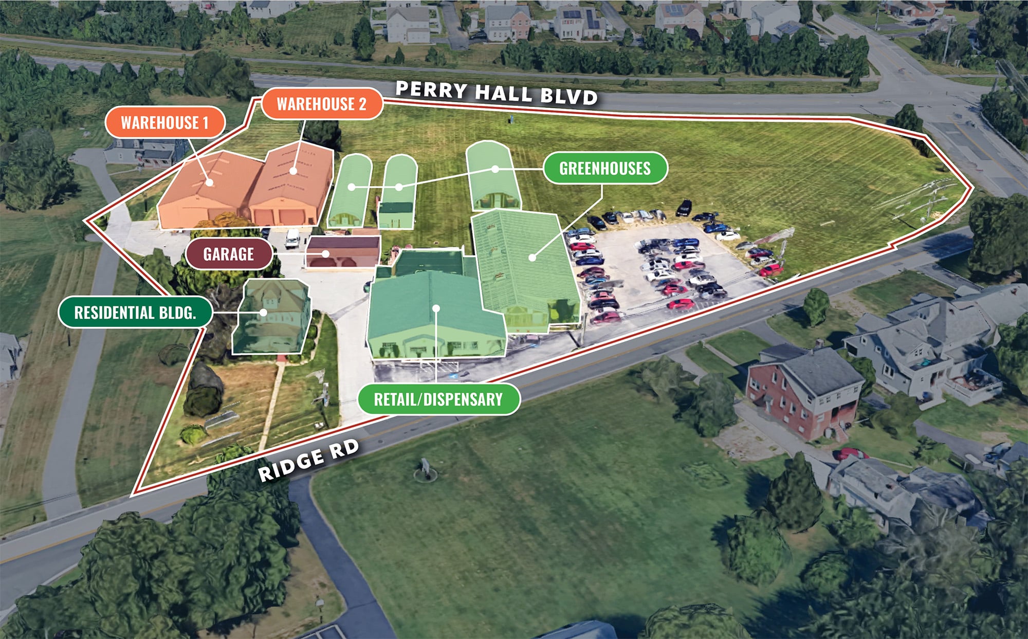 The property is improved by a retail storefront, two warehouse buildings, large garage, single family home and four greenhouses, as detailed below.