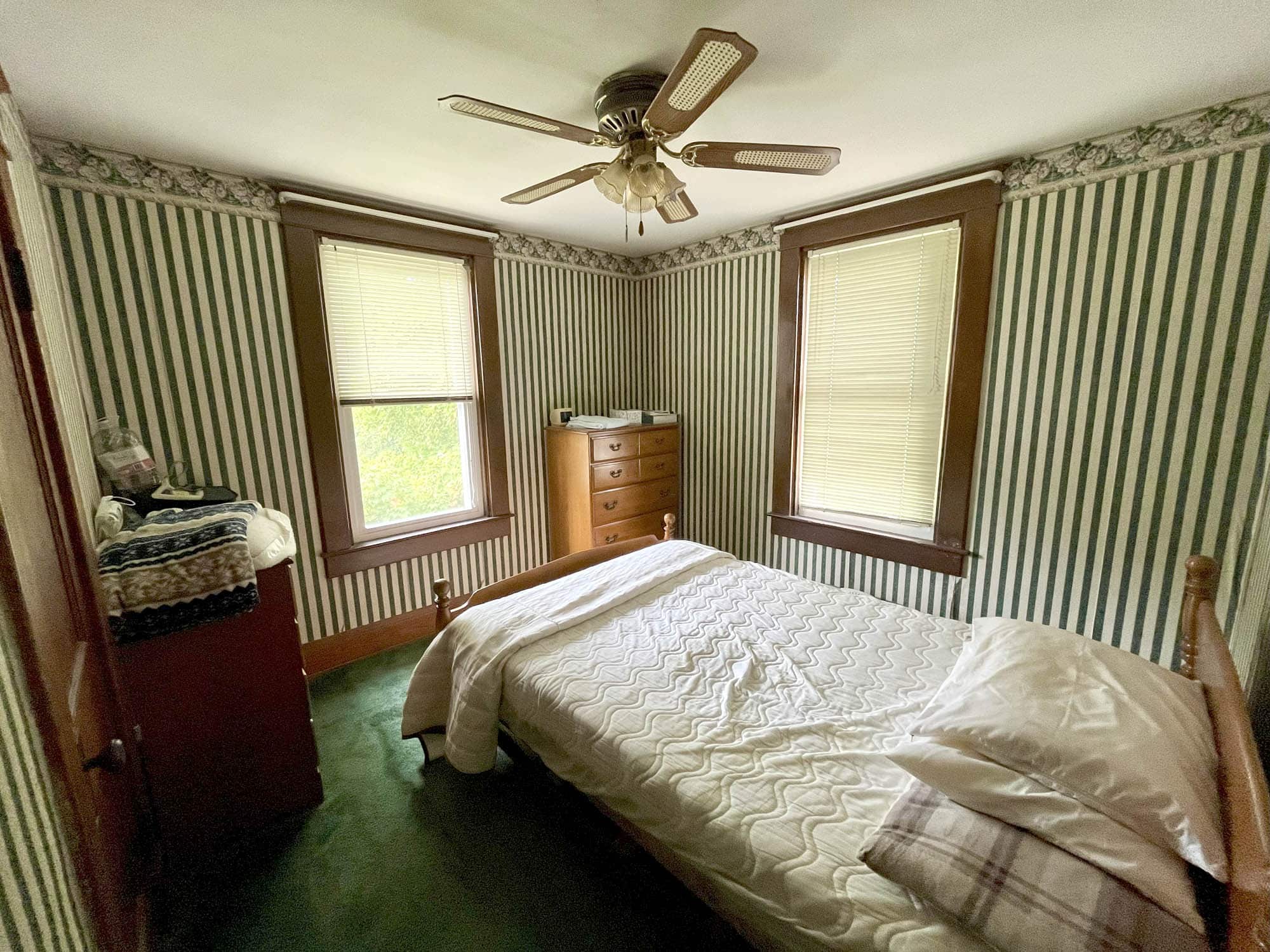 Two and one-half story farmhouse containing approximately 2,100 square feet of living area plus unfinished basement and attic spaces. Asphalt shingle roof, aluminum siding, vinyl clad replacement windows. Arranged as follows: office, dining area, kitchen, full bath and entry foyer, on the first floor; 4 bedrooms and full bath, on the second floor; floored unfinished attic; unfinished basement with utility and laundry areas; oil boiler; electric 50 gallon water heater; 200 amp. electrical service.