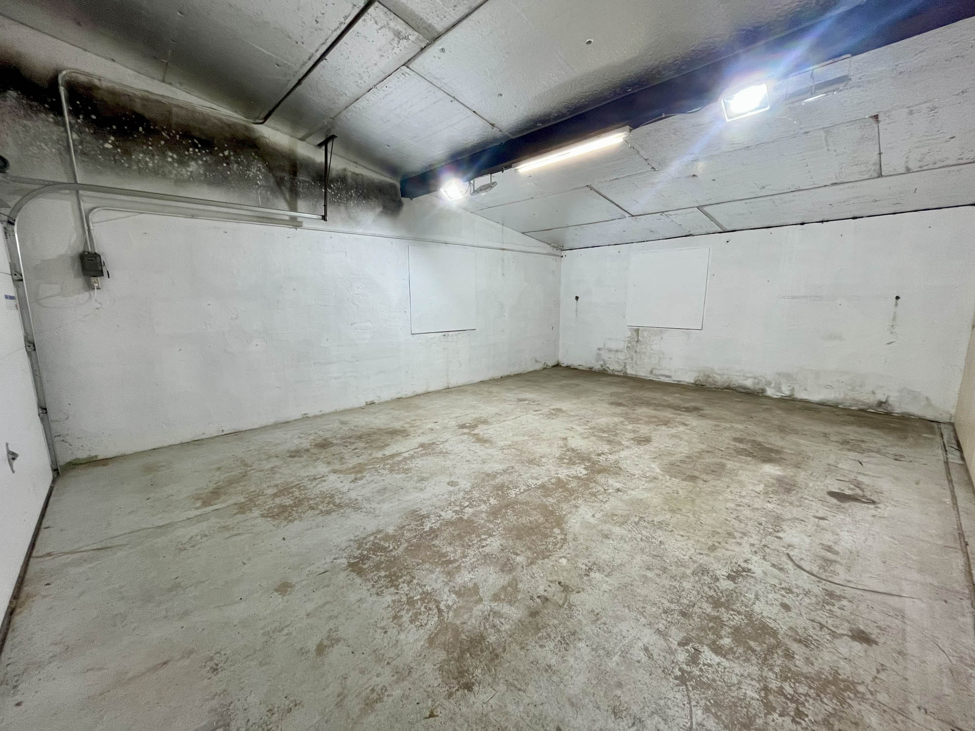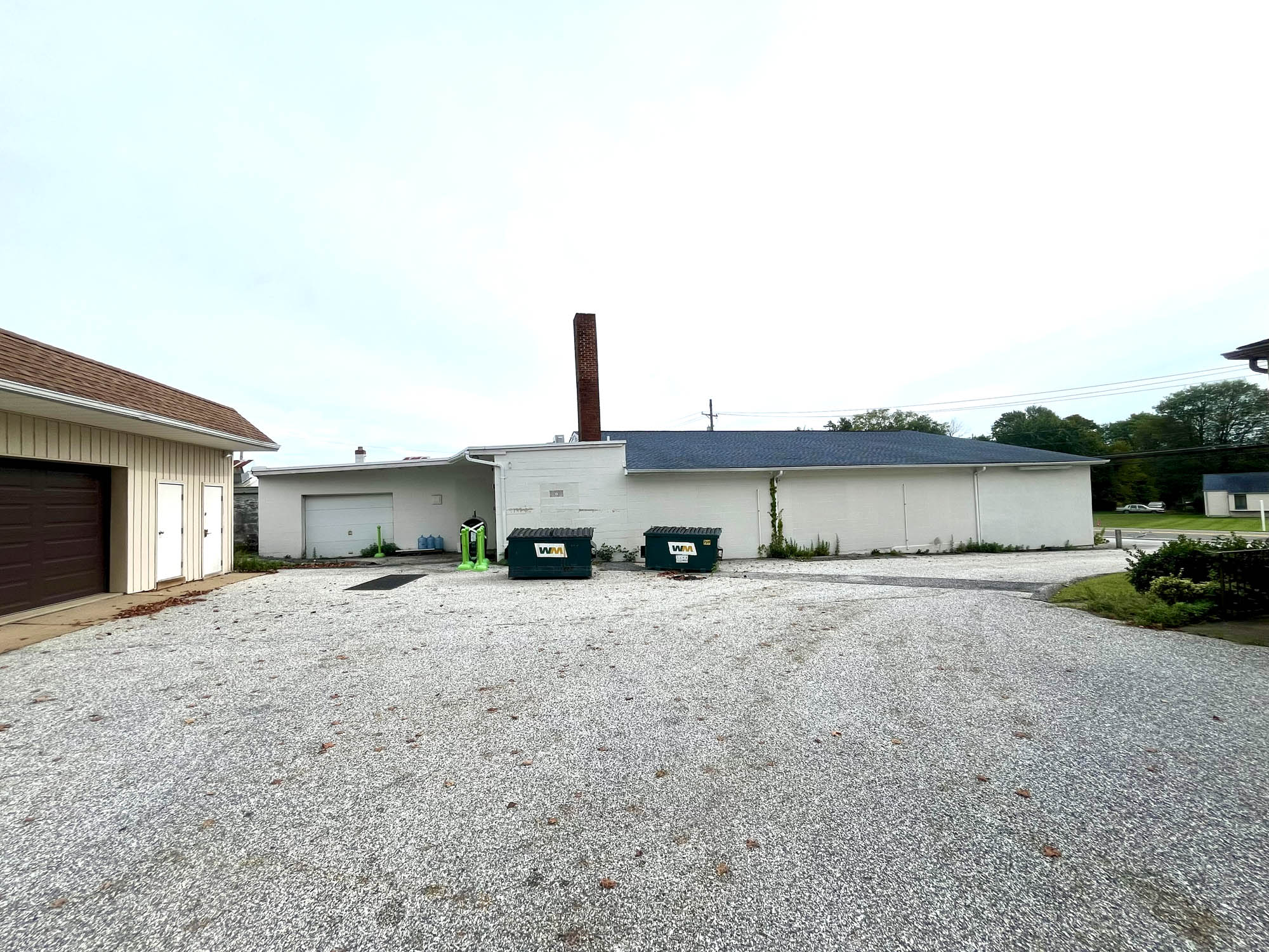 Single story masonry block building containing approximately 5,600 square feet of gross building area. Exterior features include asphalt shingle and rubberoid roofs, drive-in loading with roll-up door, covered storefront entrance, rear entrances and mixed windows. Interior finishes include LVP and epoxy flooring, drop ceilings, drywall, full security system with both finished and unfinished storage areas.