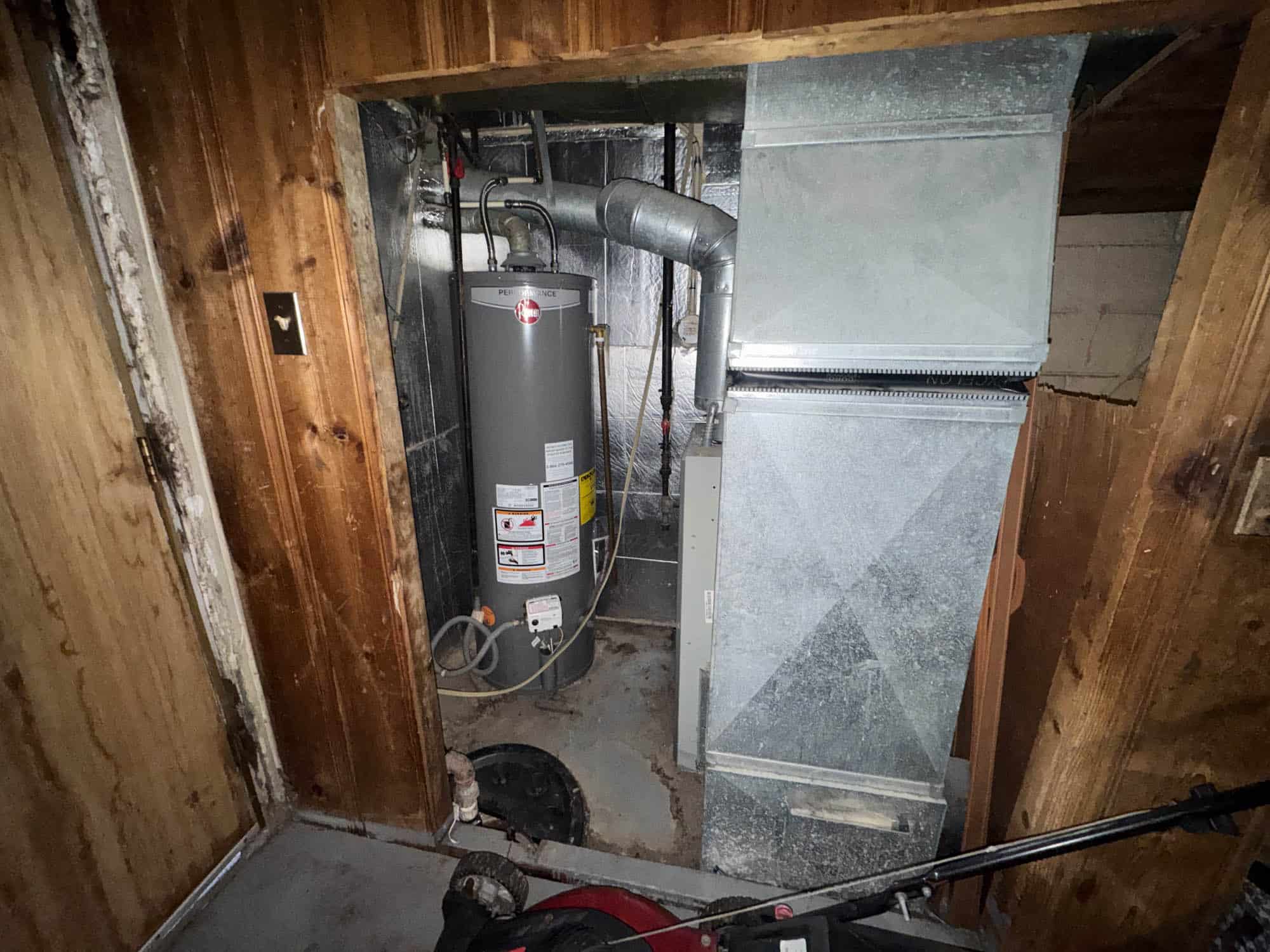 Two story end-of-group townhome, constructed in 1957, containing 1,088 square feet of living area and 544 square feet of basement space, according to public tax records.