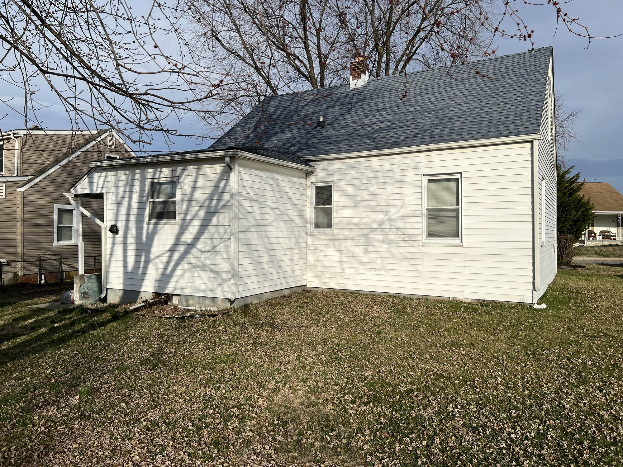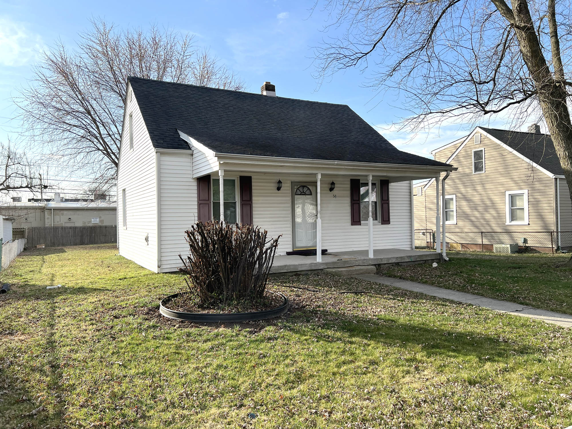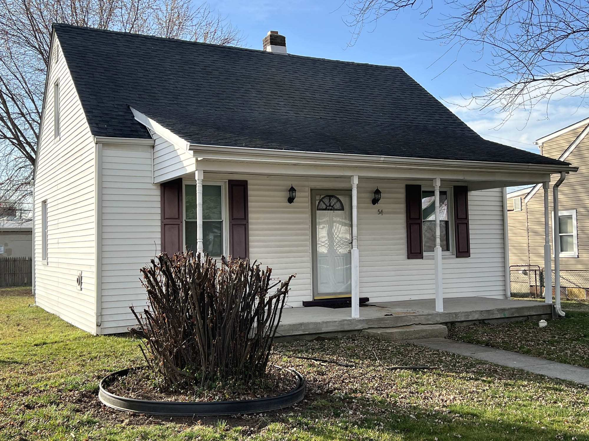 Bungalow, built in 1943, containing 1,104 square feet of living area on two levels, plus small unfinished basement, according to public tax records. The home has vinyl siding, architectural shingle roof, vinyl-clad double hung windows, concrete block foundation and a roof covered front porch. Home contains: