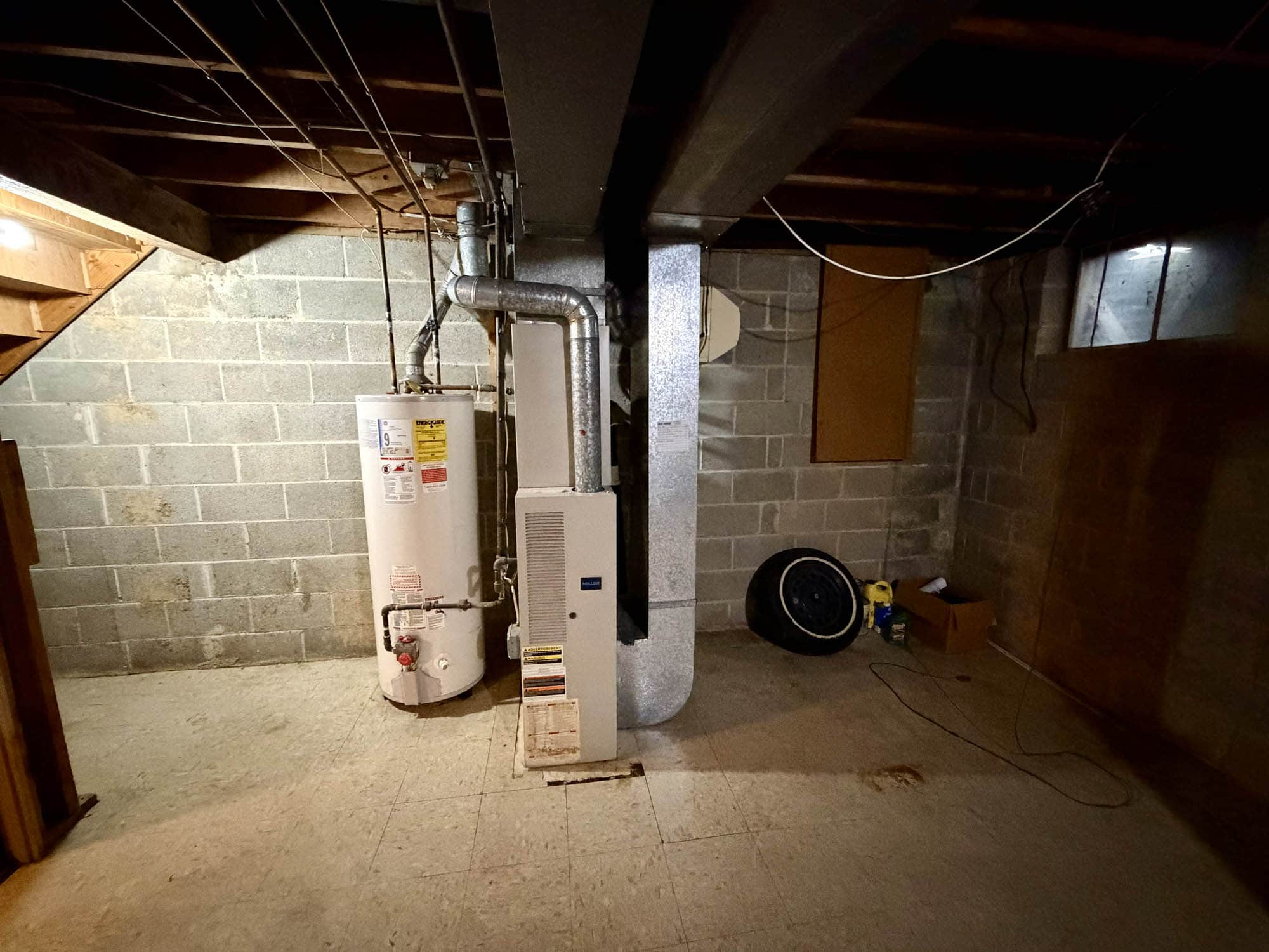 Mechanical – gas forced air heat, central air conditioning, gas 50-gallon water heater, 60-amp. circuit breakers, sump pump