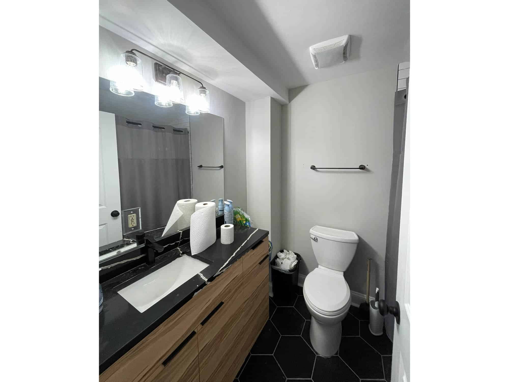 Full bathroom – wood flooring