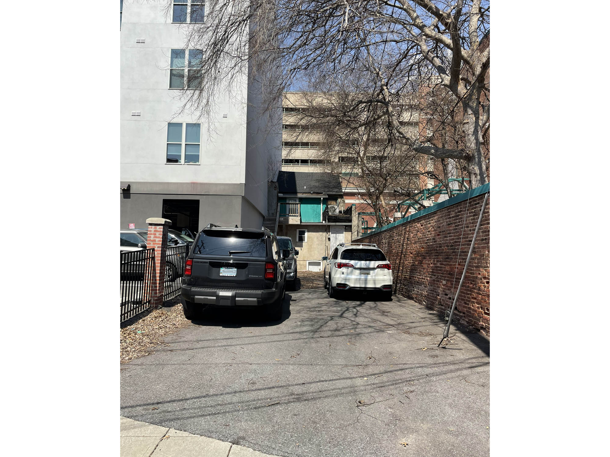 Off-street parking or storage area comprising approximately 1,400 square feet (4+ car parking stacked)