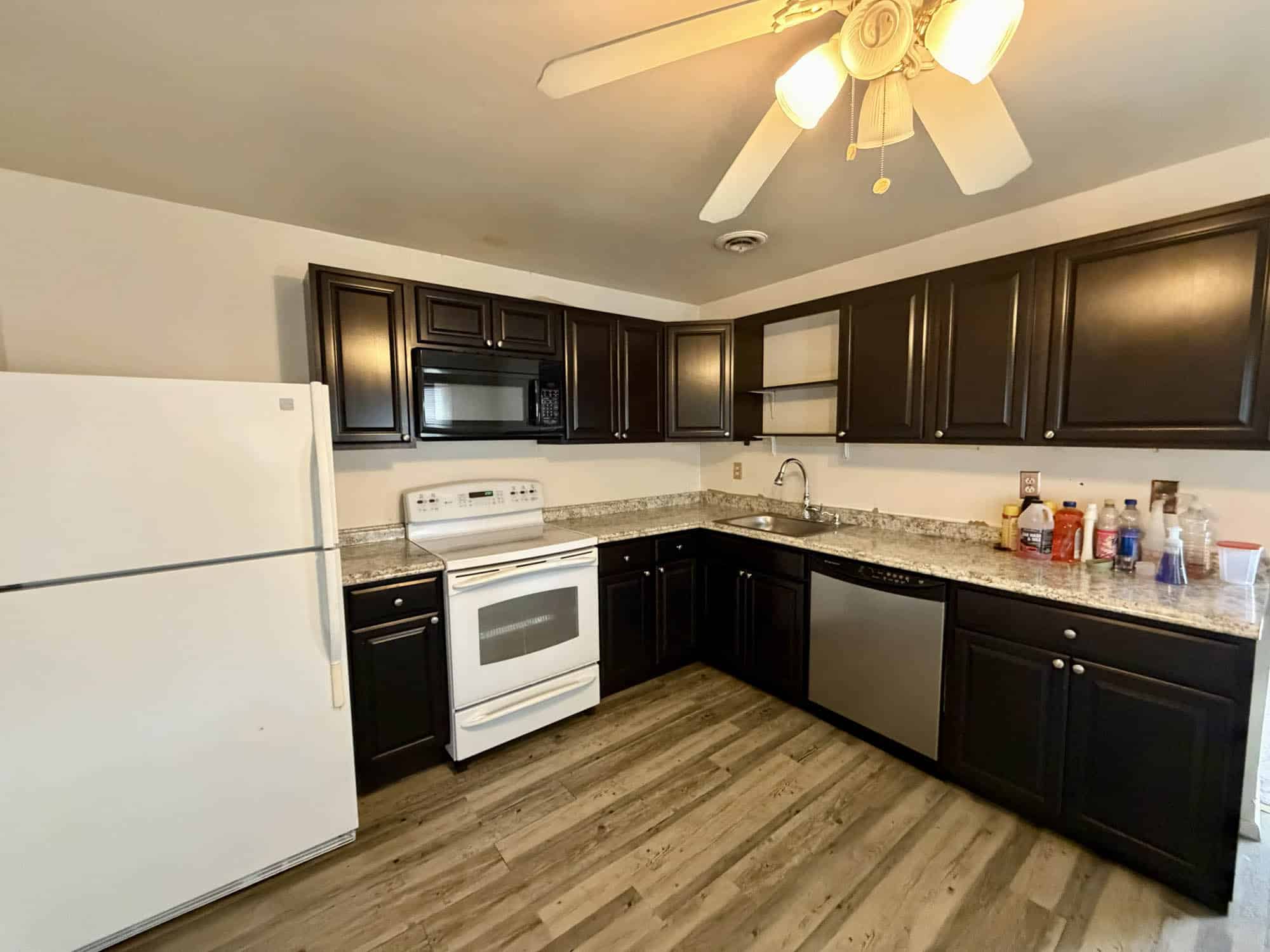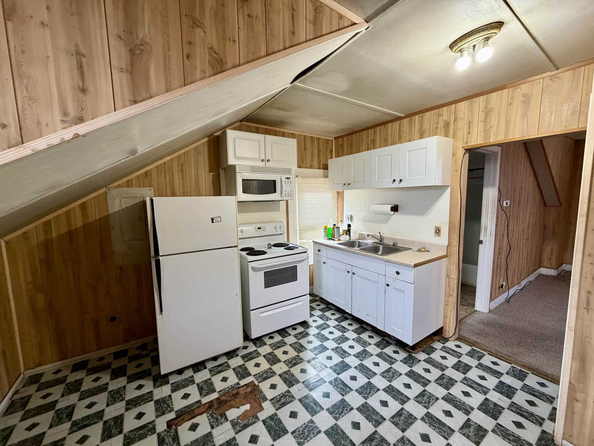 Eat-In-Kitchen – vinyl flooring, exit to rear