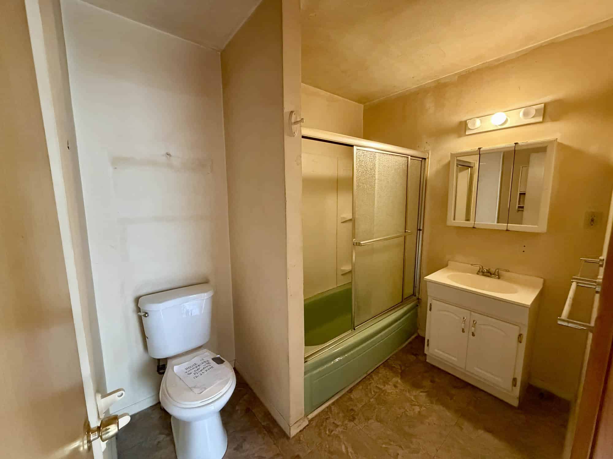 8226 Fort Smallwood Road – vinyl sided one and one-half story bungalow with composition shingle roof, vinyl-clad double-hung windows, wooden fire escape and concrete block foundation built in 1952, according to public tax records. A vinyl sided converted barn building is located at the rear of the home. Public tax records list total square footage as 2,548 above grade and 672 square feet of basement space. Full property arrangements are listed below: