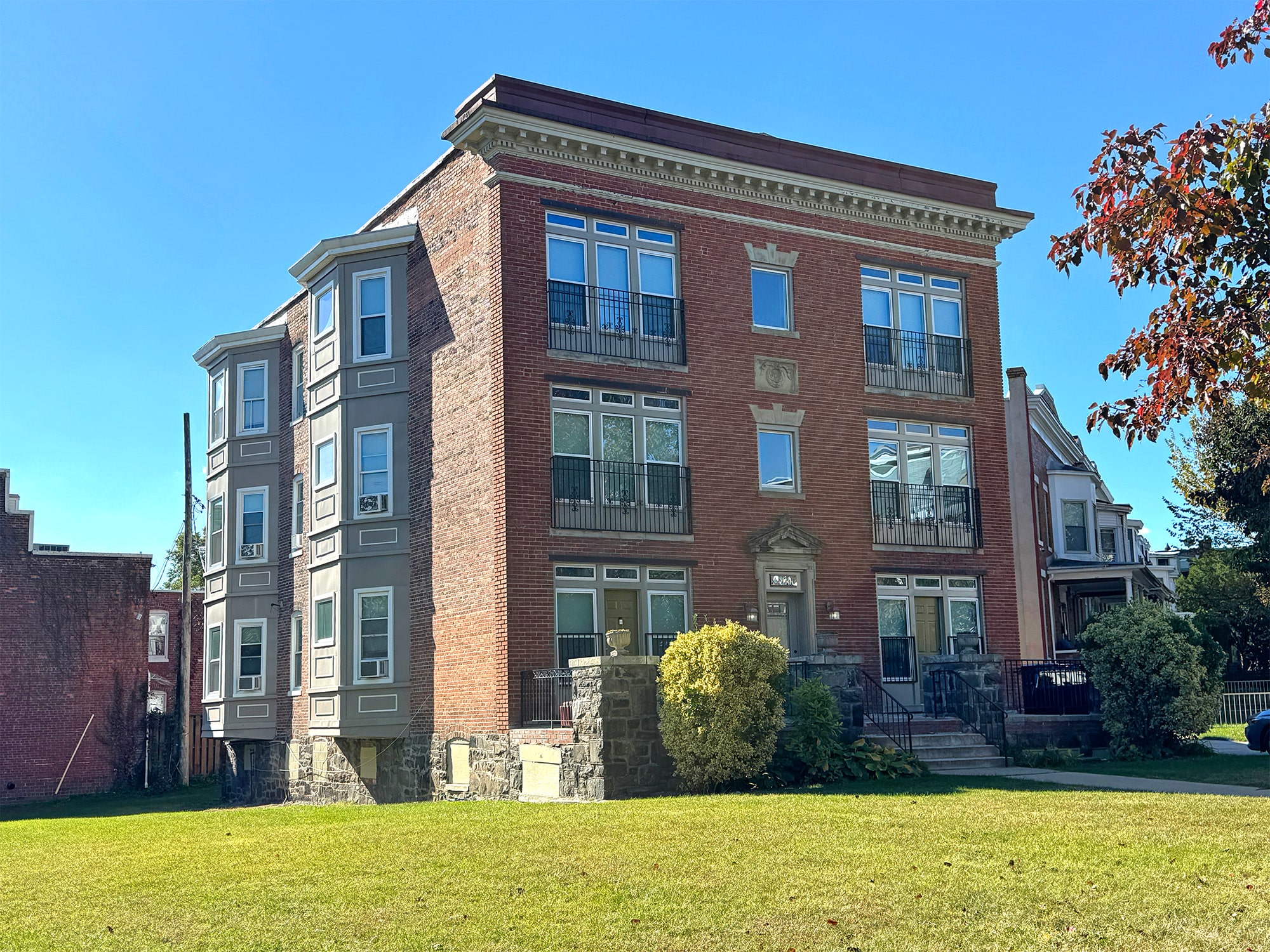 The building is located in the Reservoir Hill neighborhood of Baltimore City. The historic community is famous for its architectural diversity displayed in its late 19th and early 20th century stand-alone mansions and porch-front townhomes. Druid Hill Park is one block north of the building and offers its residents long walking and bike trails, a pool, basketball and tennis courts, the Rawlings Conservatory and the Maryland Zoo. The area has been the center of a recent $100 million mixed-use community development project known as Madison Park North. The new community will feature 120 new townhomes, 200 apartments, approximately 100,000 SF of office space, community improvements and more. German Park is on the adjacent corner and a vacant City owned lot is directly next door to the property. Commuters have convenient access to major thoroughfares, including I-83 for north/south travel and North Avenue for east/west travel. Major employers in the area include the University of Baltimore, Maryland Institute College of Art (MICA), and the University of Maryland Baltimore.