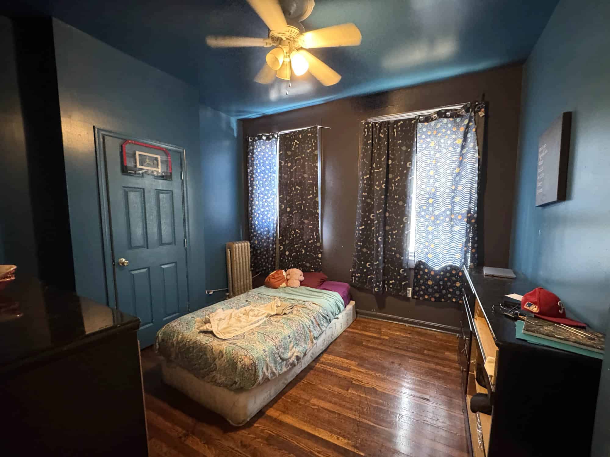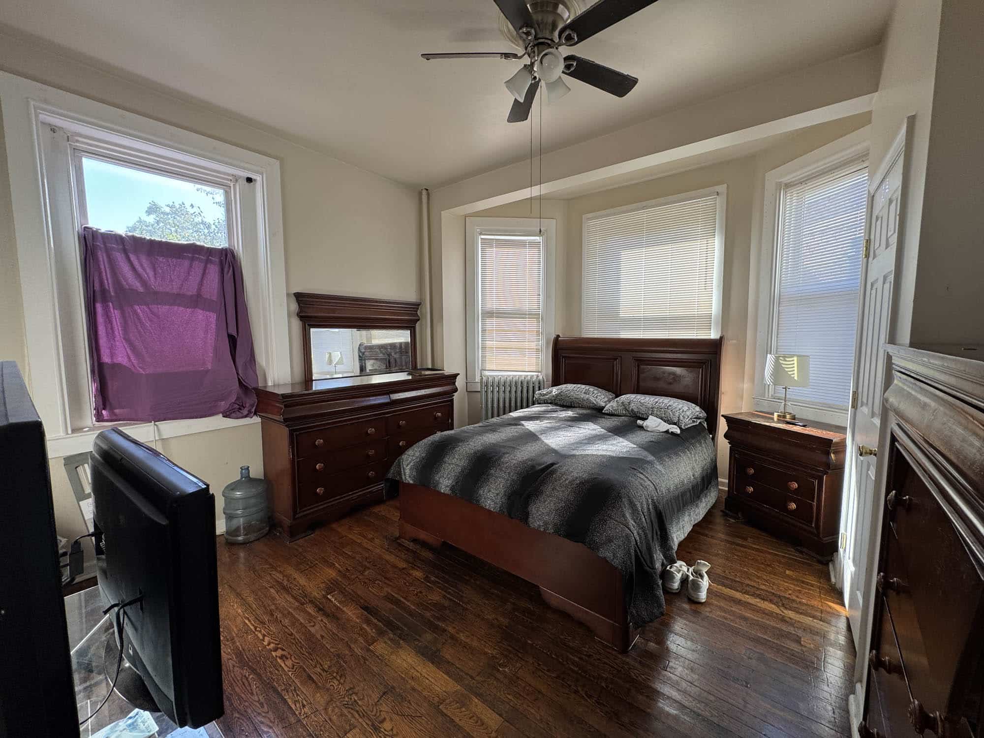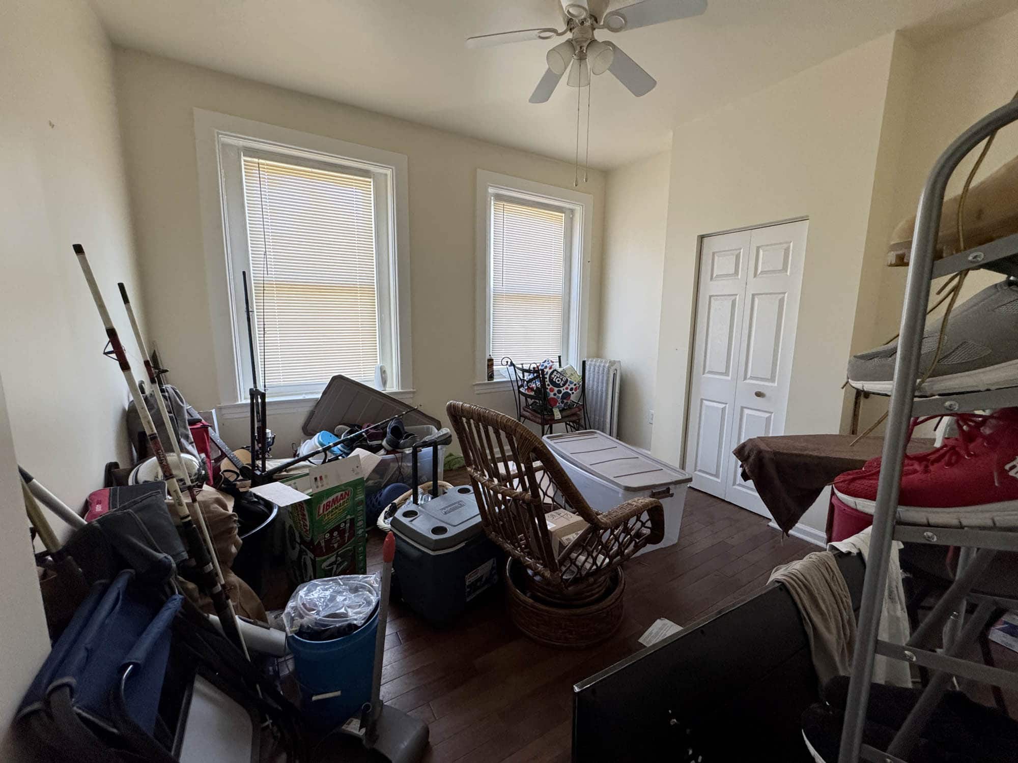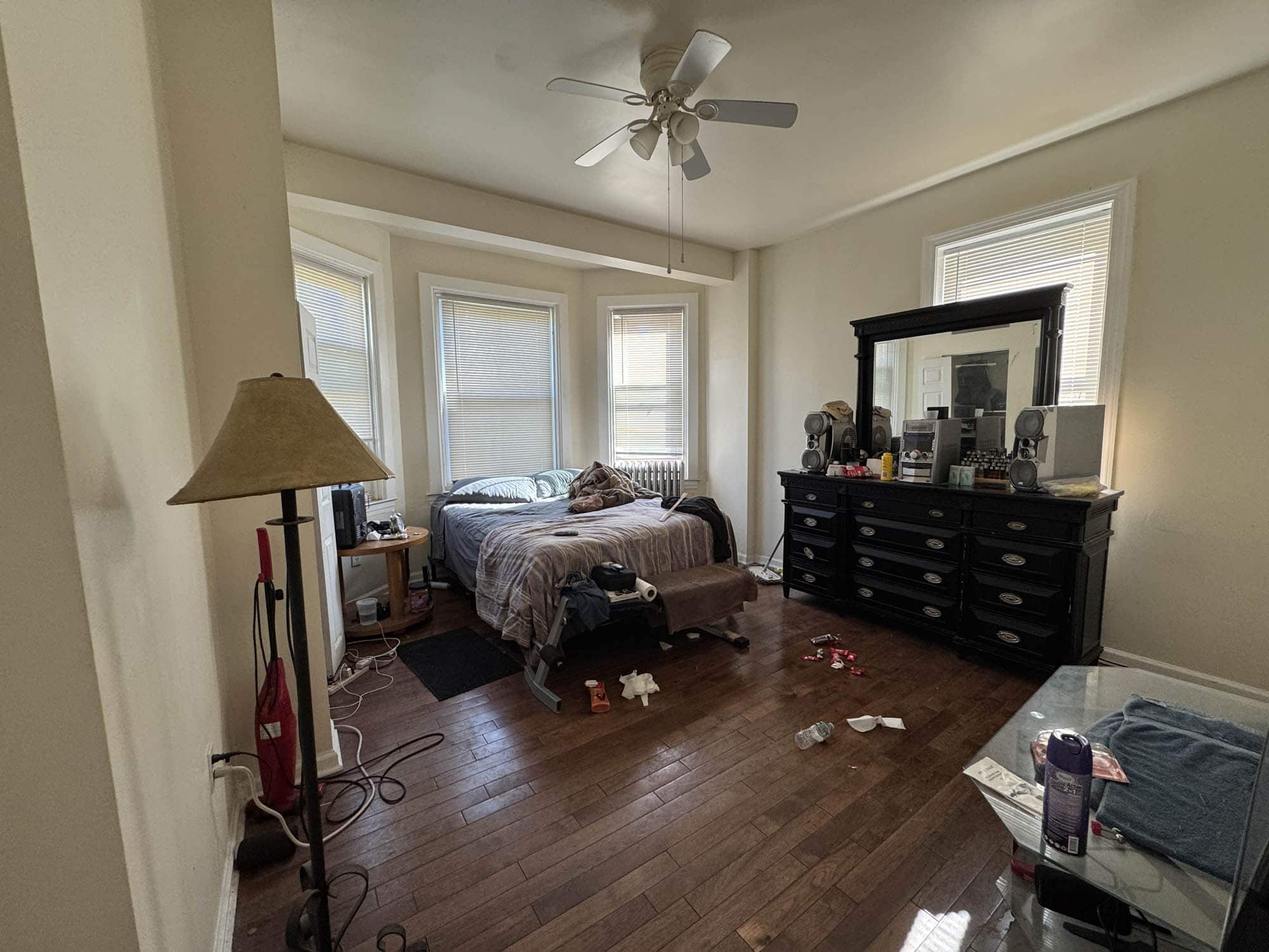 • Bedroom – hardwood flooring with ceiling fan and closet space