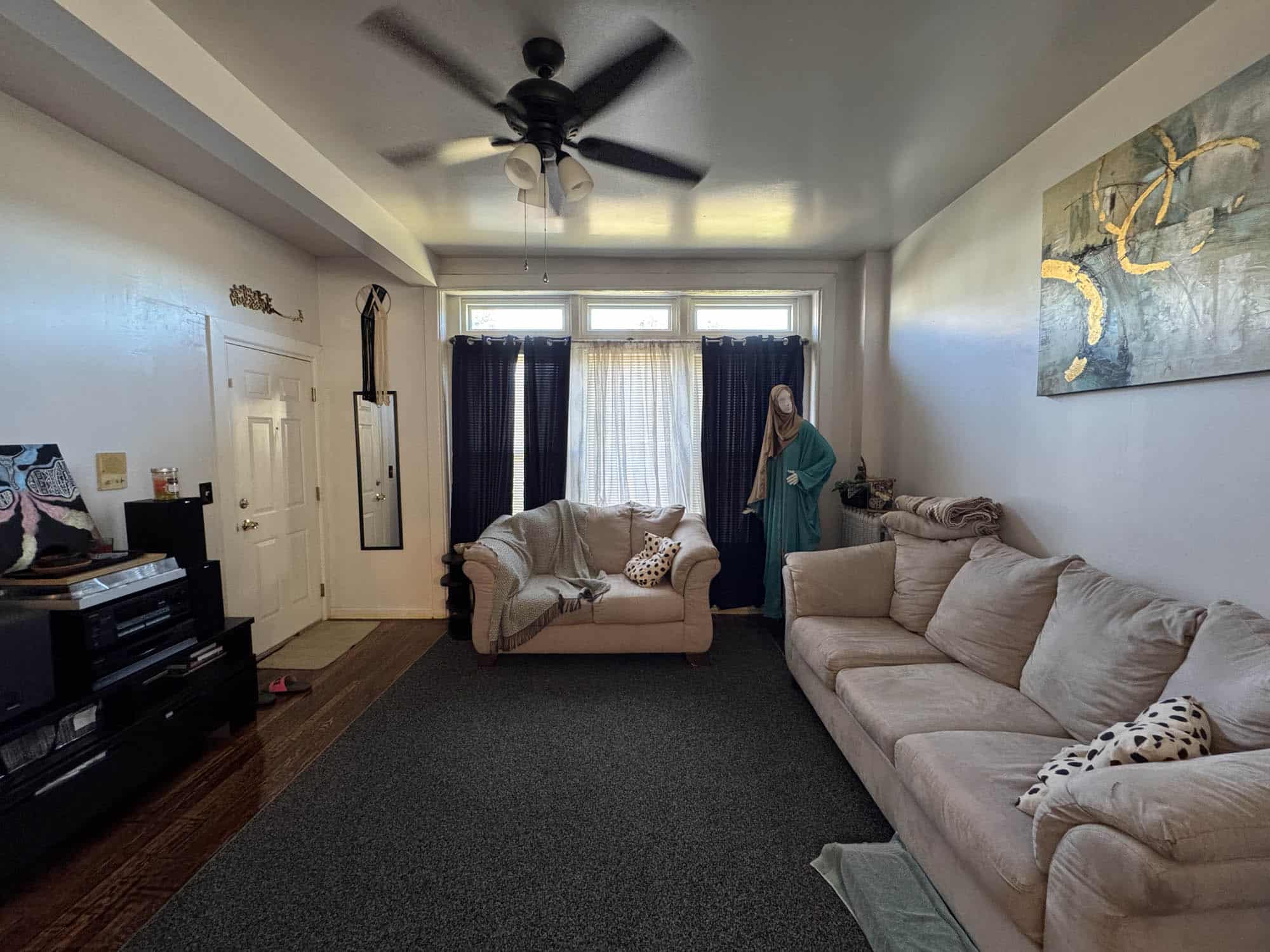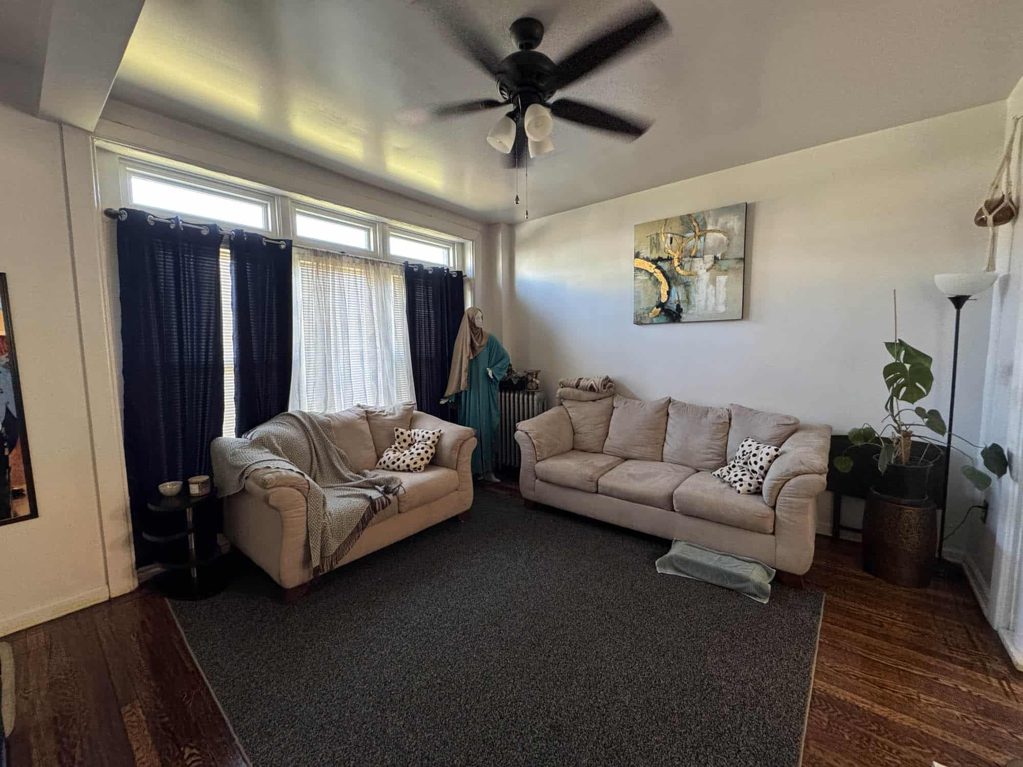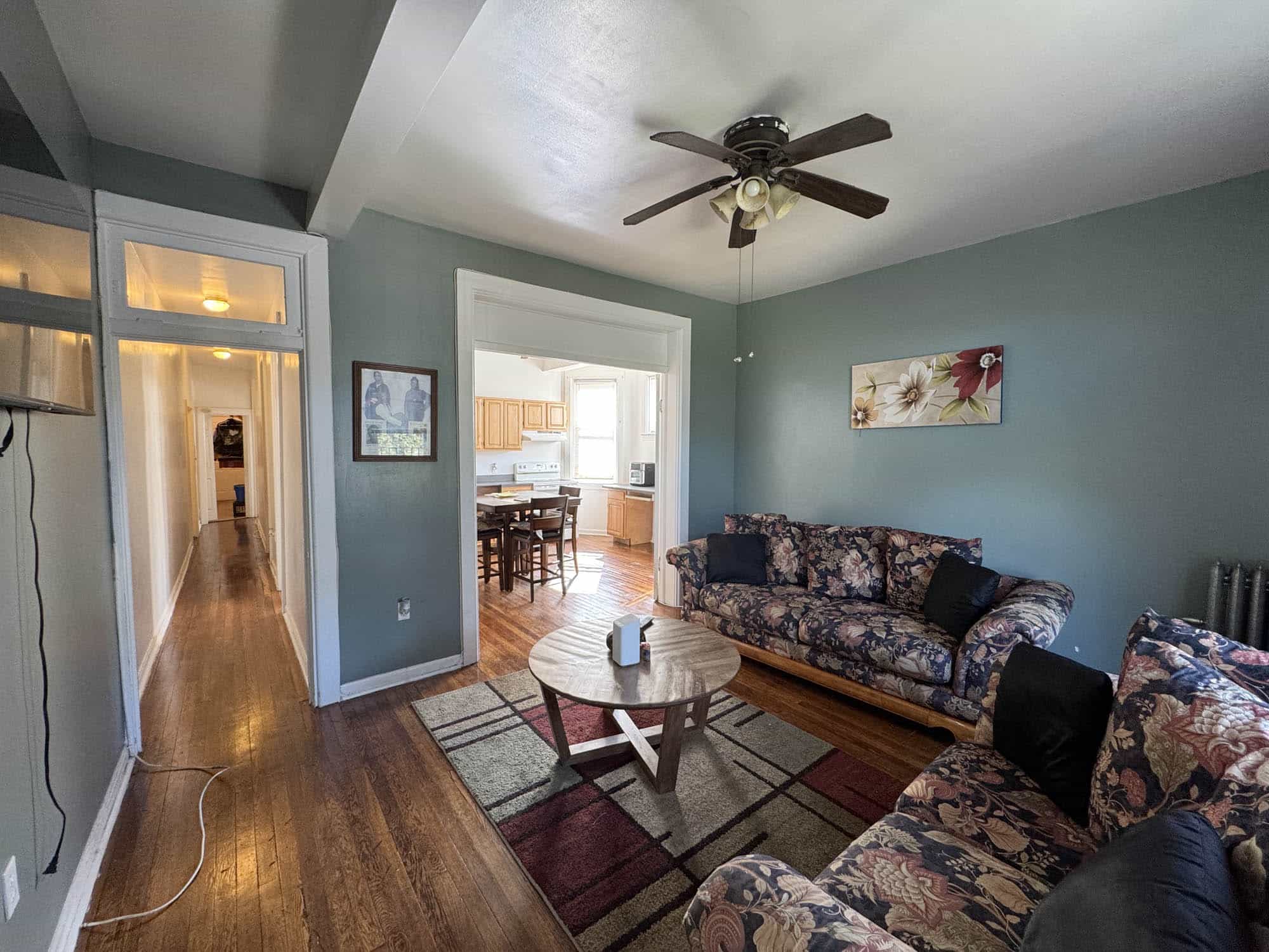 • Living room – hardwood flooring with ceiling fan
